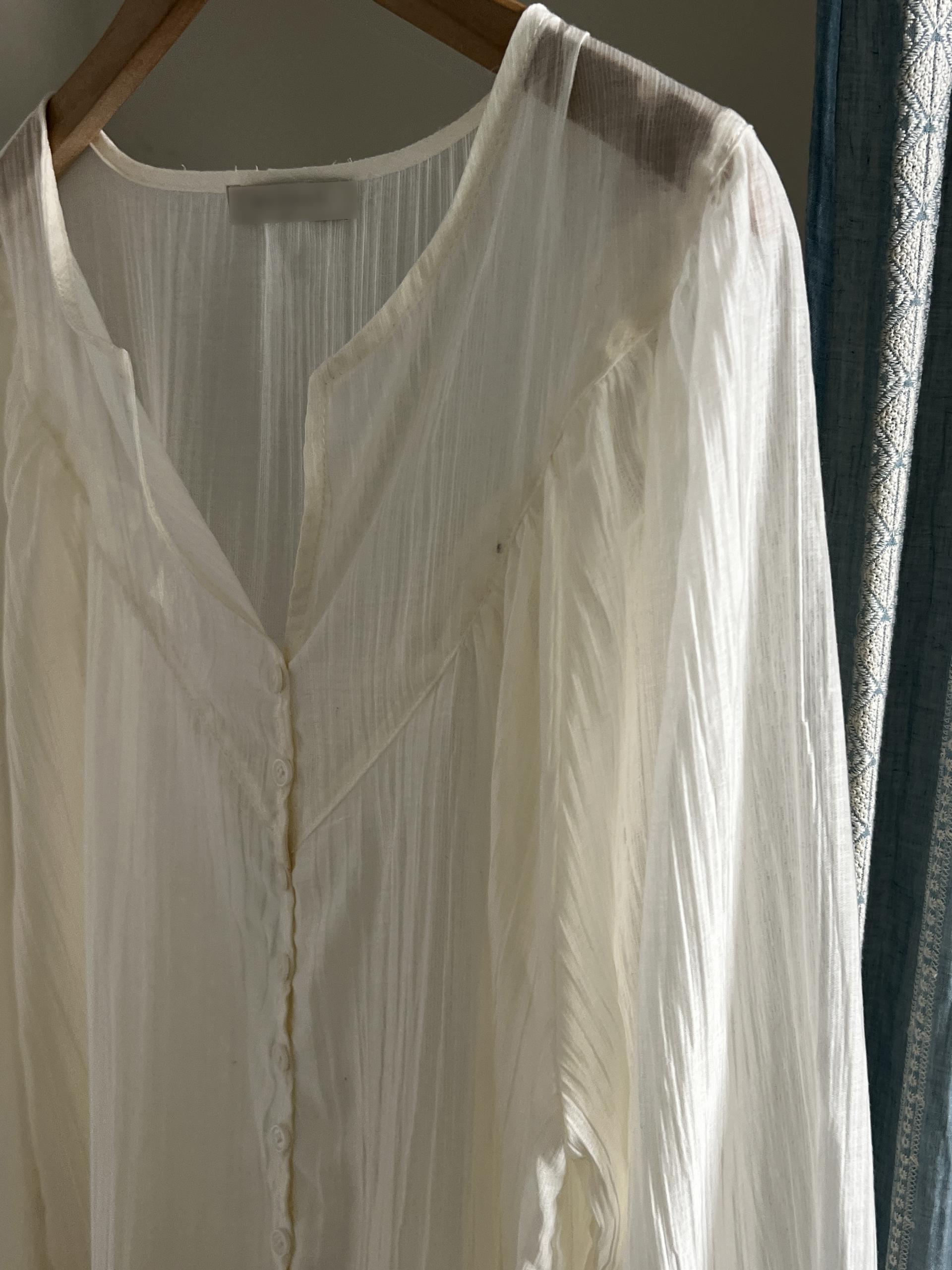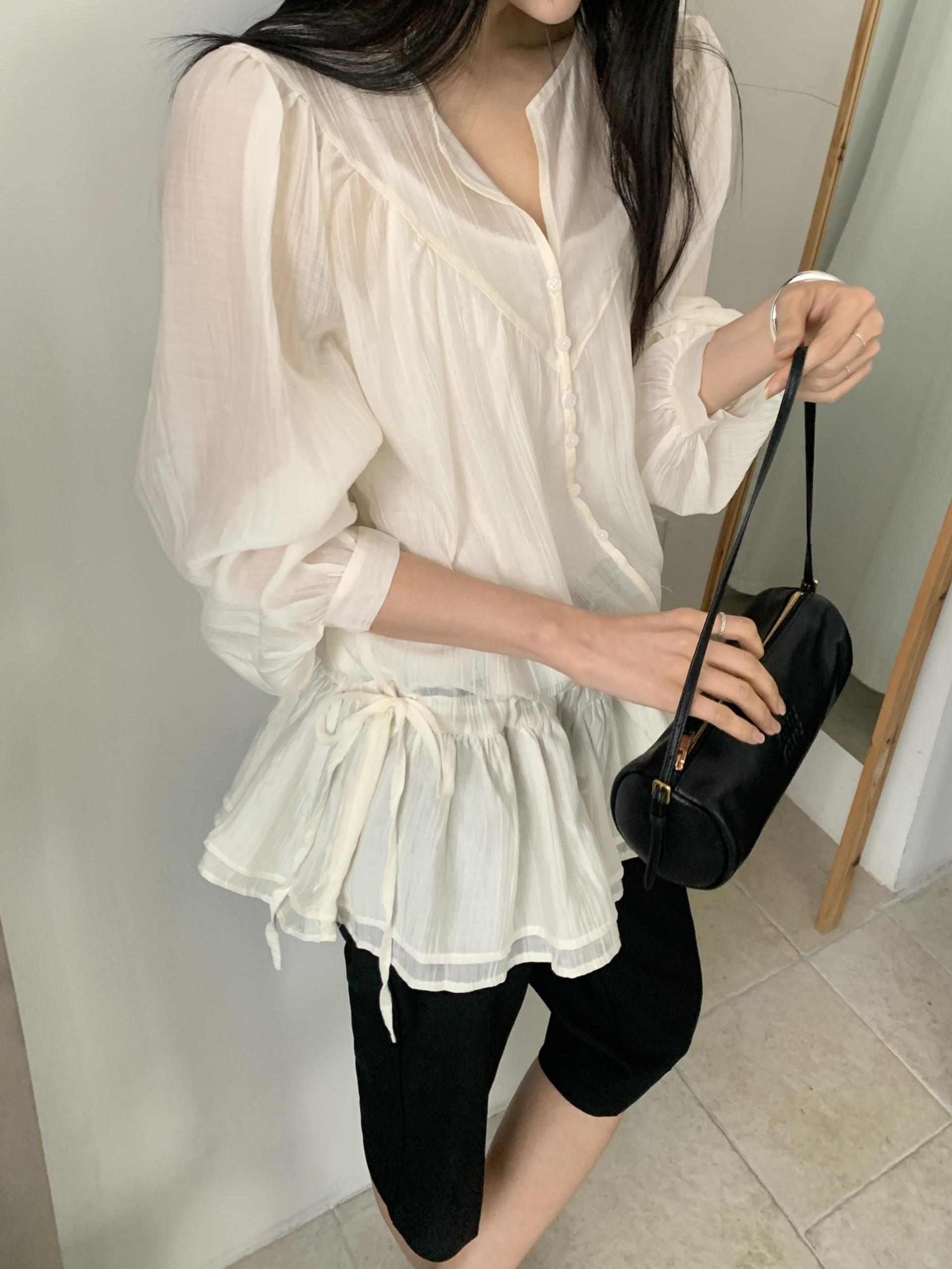 은은한 비침이 매력적인 레이어드 블라우스입니다.