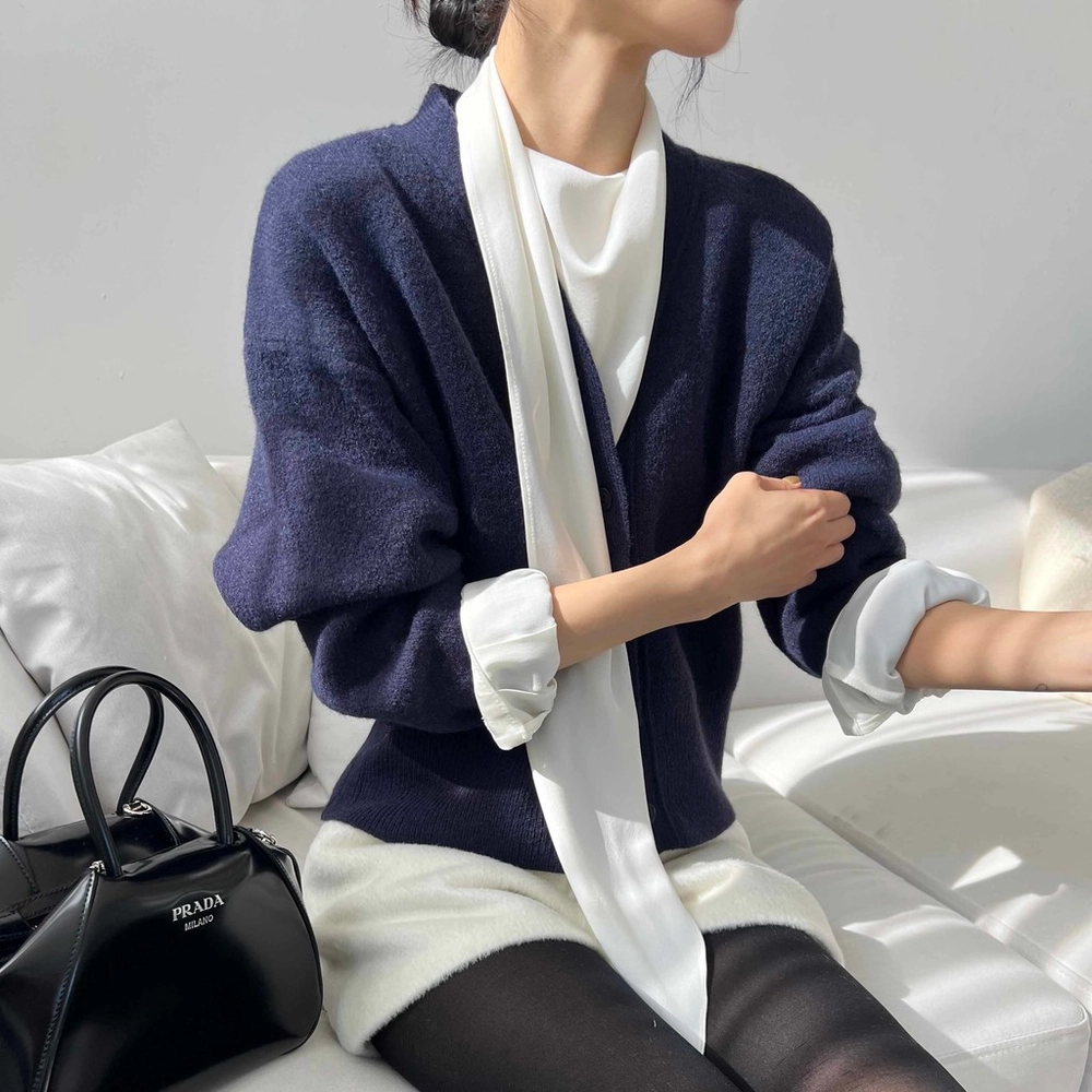 단독으로도 너무 우아하고 세련된 느낌이지만, 레이어드용으로도 다양하게 활용할 수 있어 더욱 좋았어요. 코트나 자켓뿐 아니라 가디건이나 브이넥 니트 등 다양하게 활용하기 좋습니다.