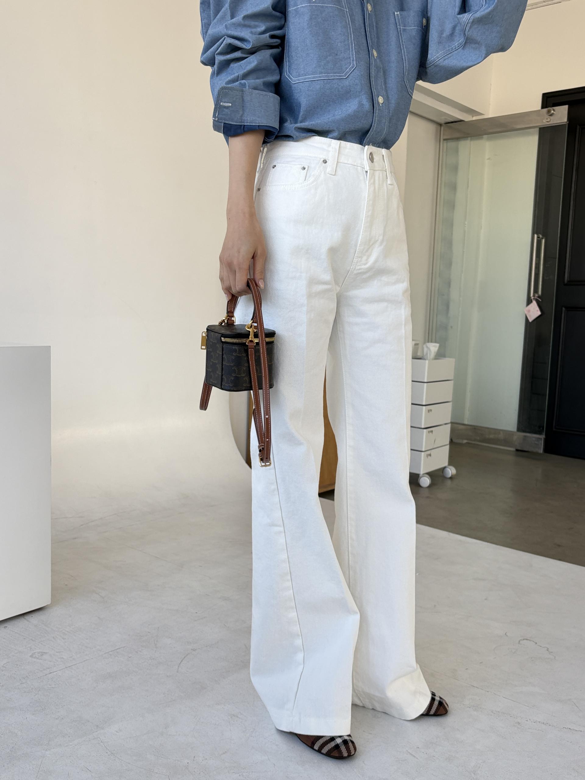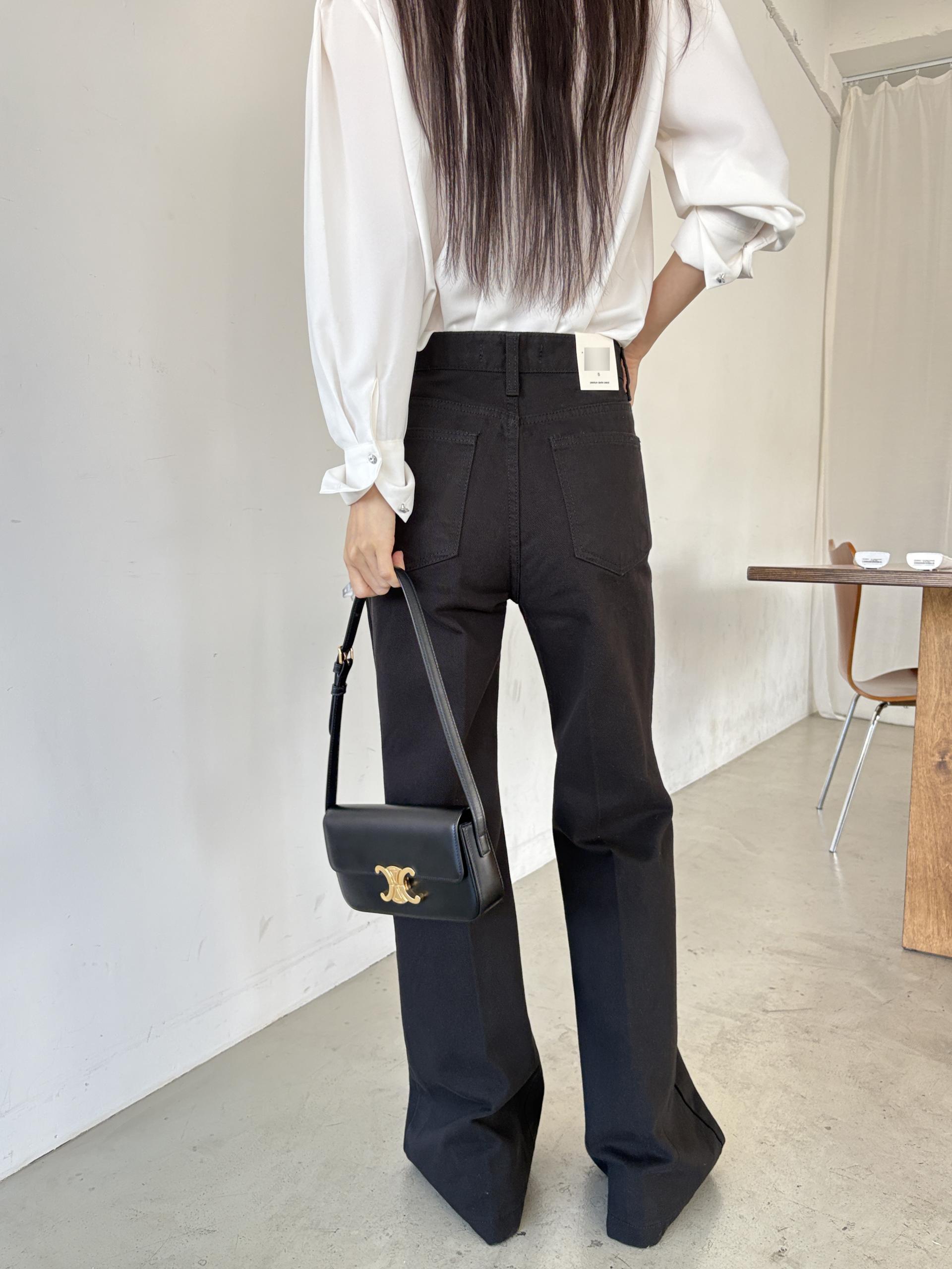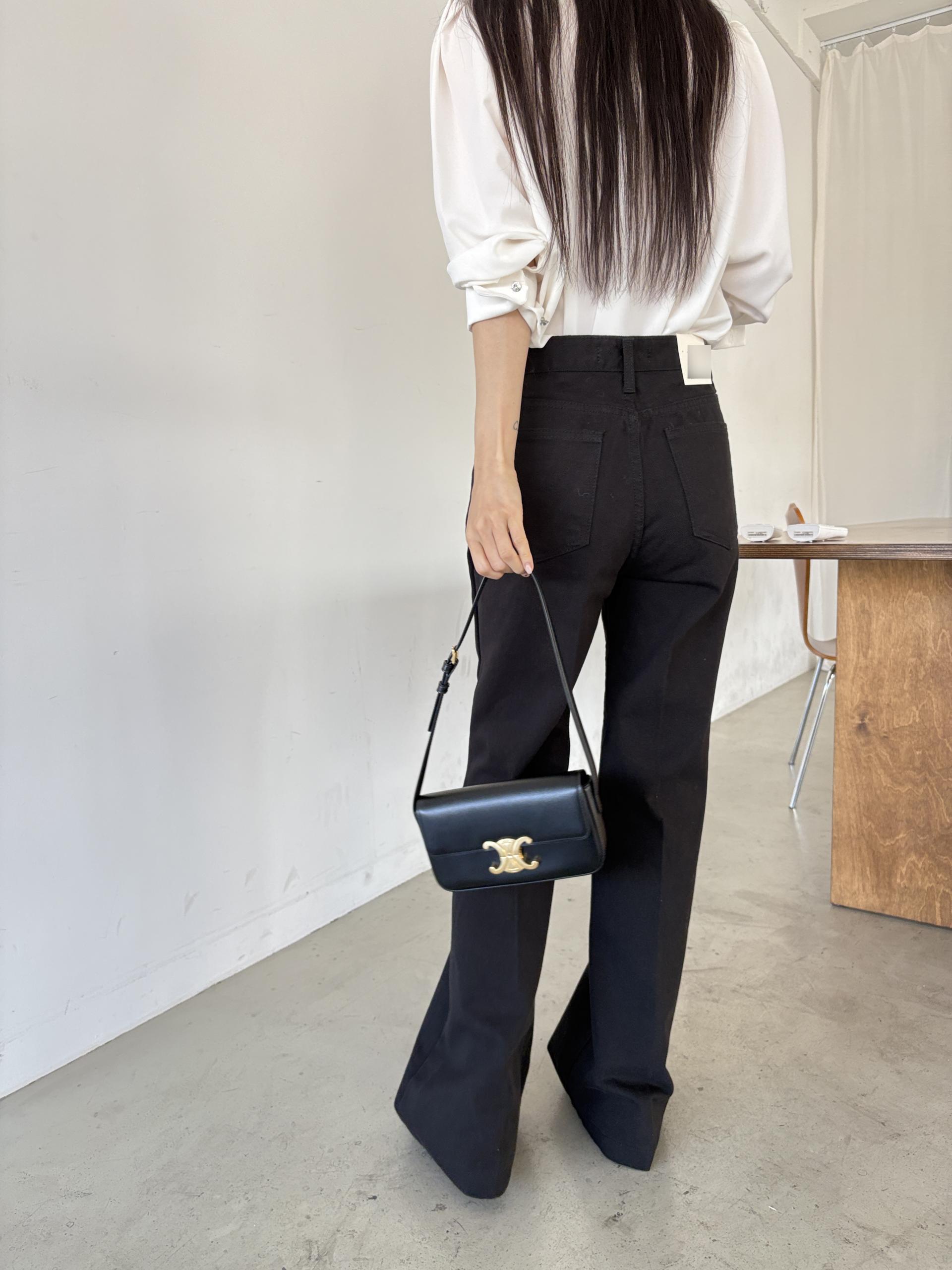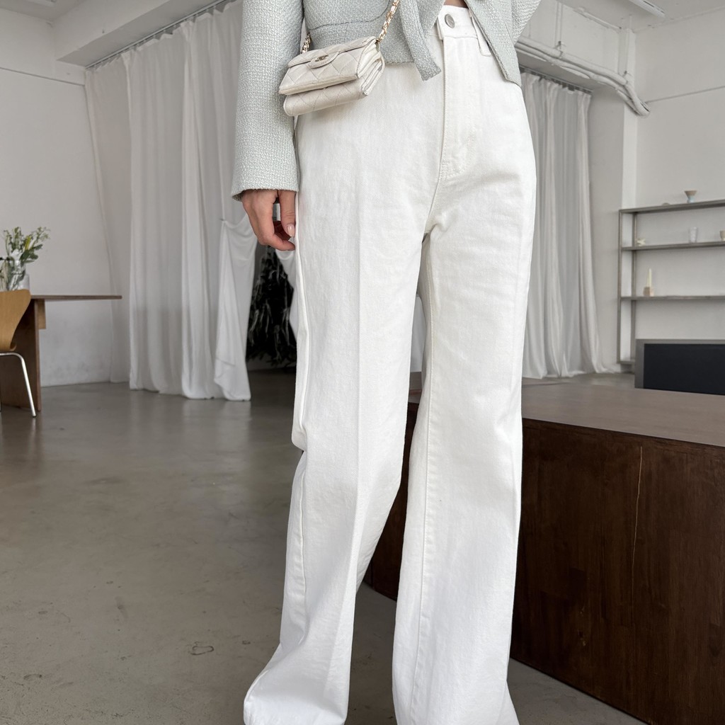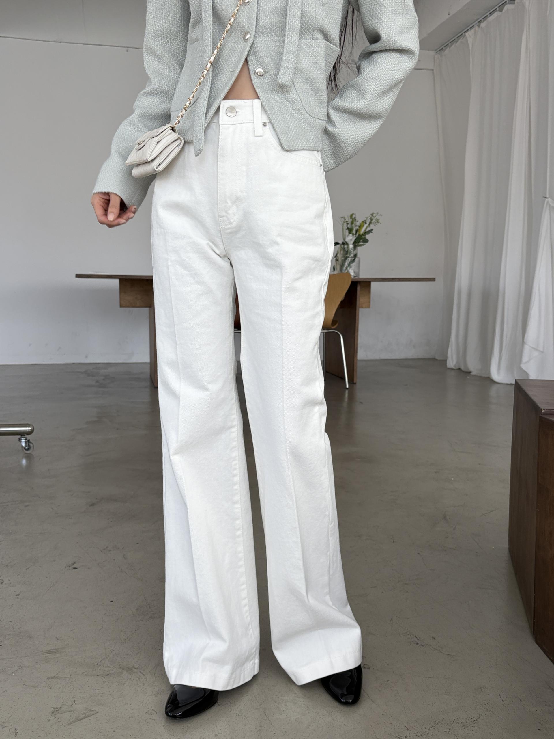 하이웨스트 밑위로 허리를 안정감 있게 잡아주고, 스트레이트와 부츠컷의 중간 정도로 자연스럽게 떨어지는 세미 부츠컷 실루엣이라 손이 더 많이 가는 팬츠입니다.