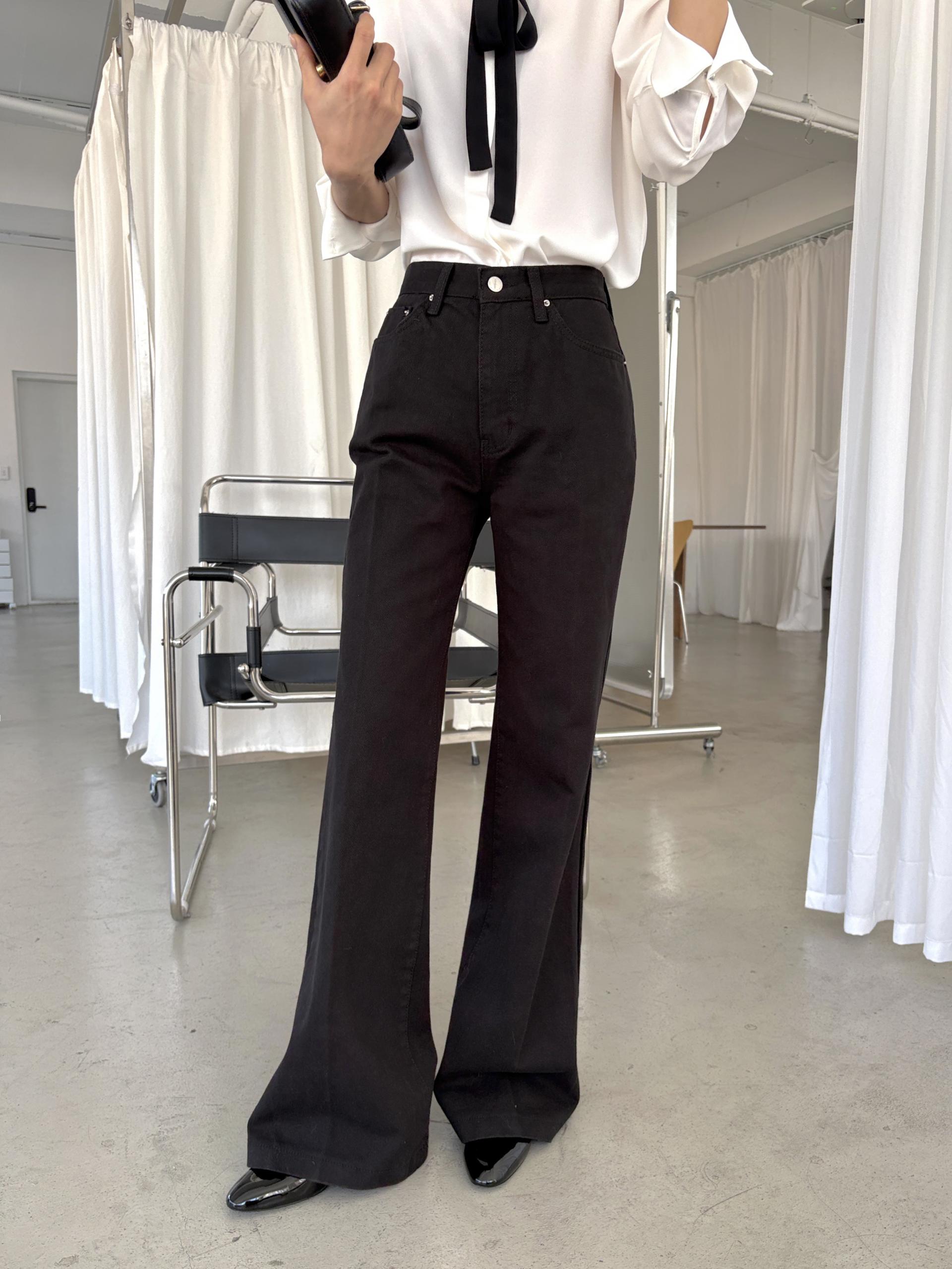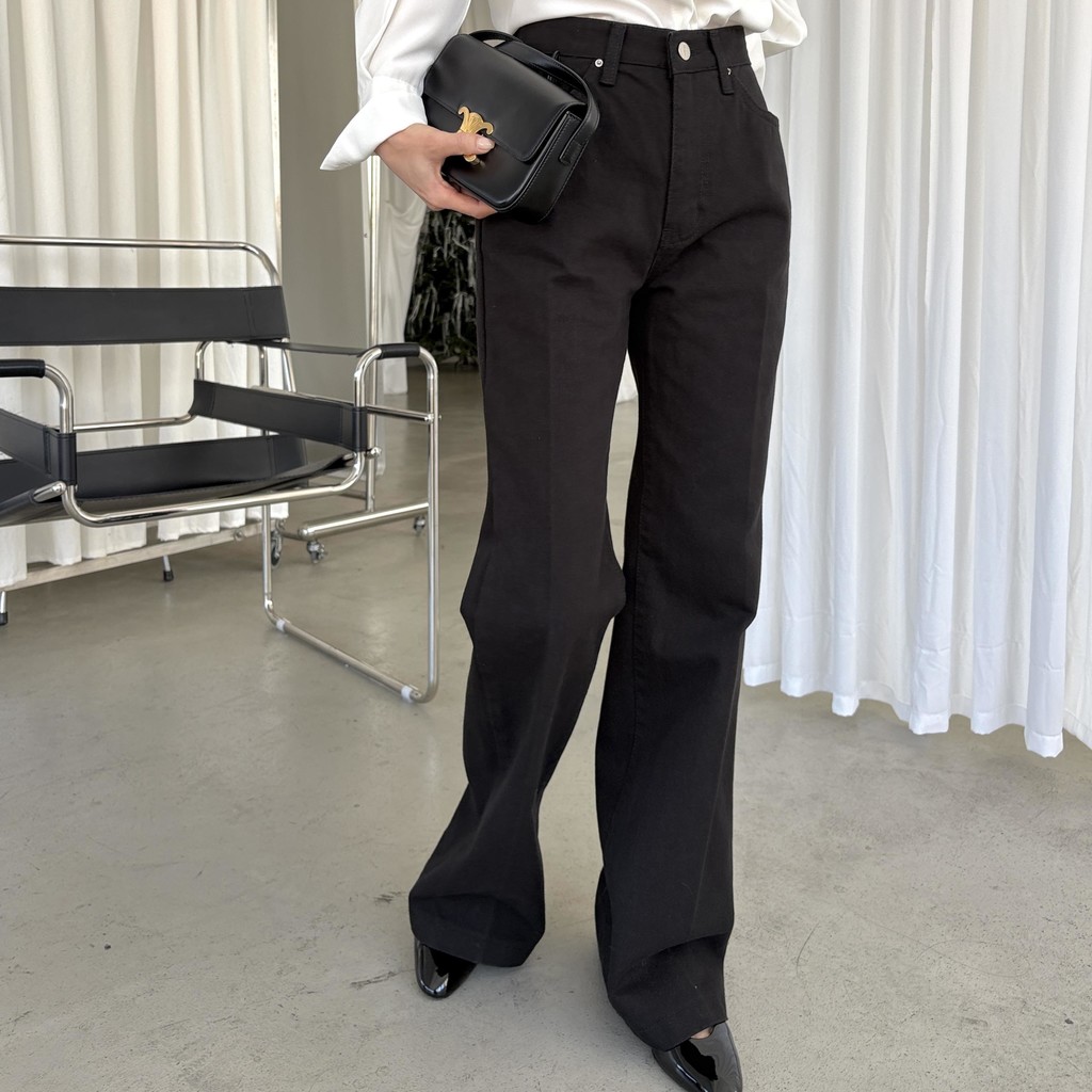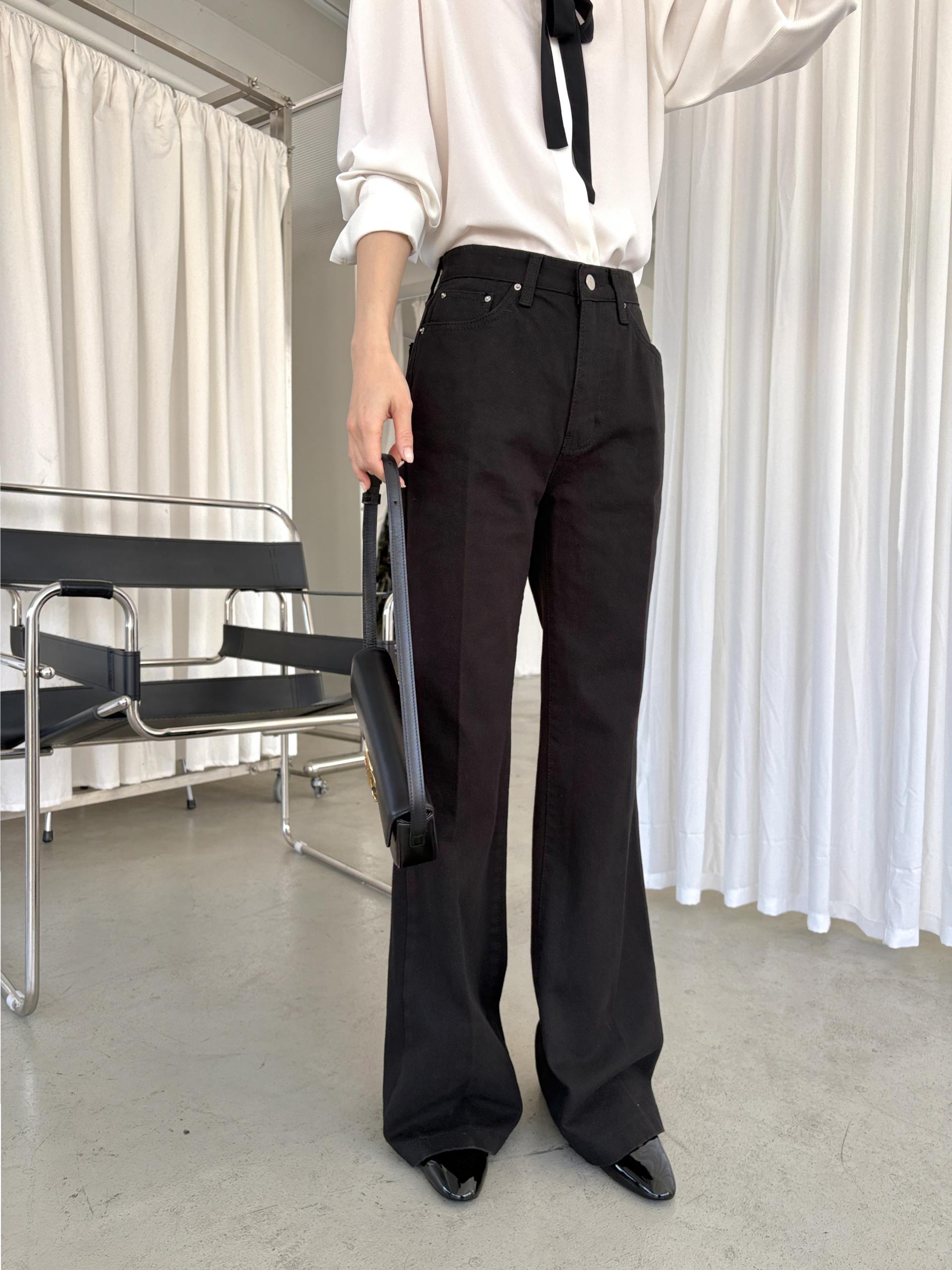 탄탄한 원단, 슬림한 실루엣의 세미 부츠컷 롱 팬츠입니다.