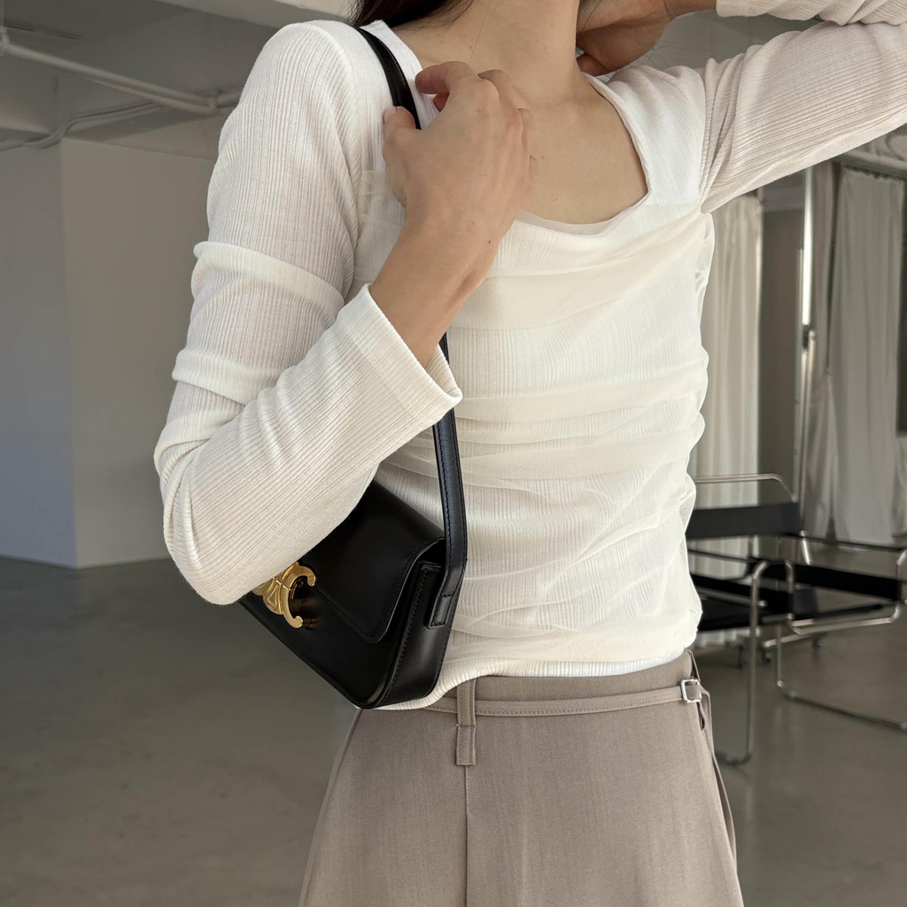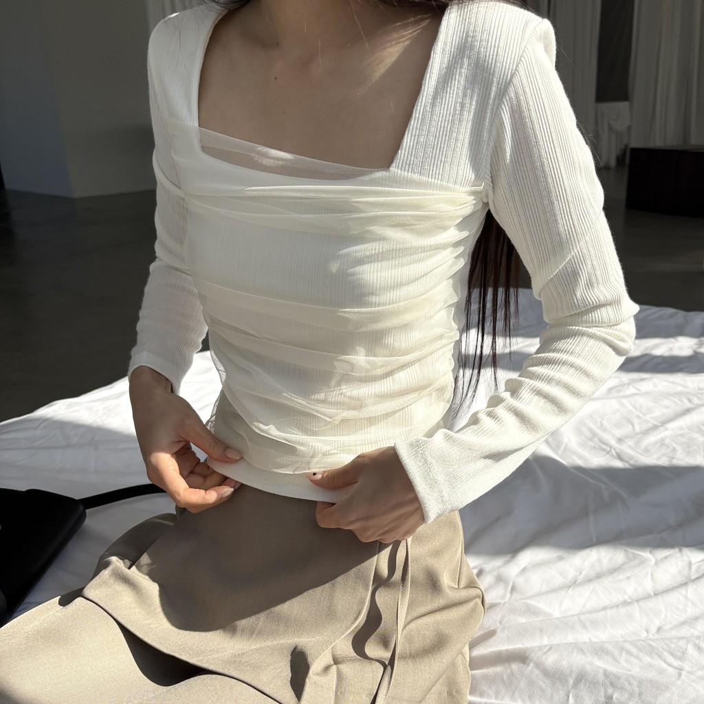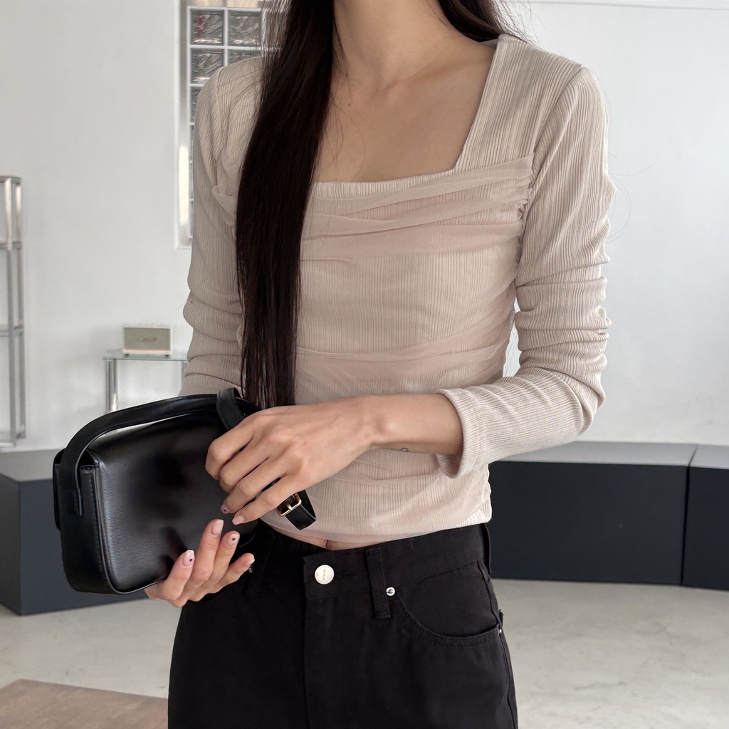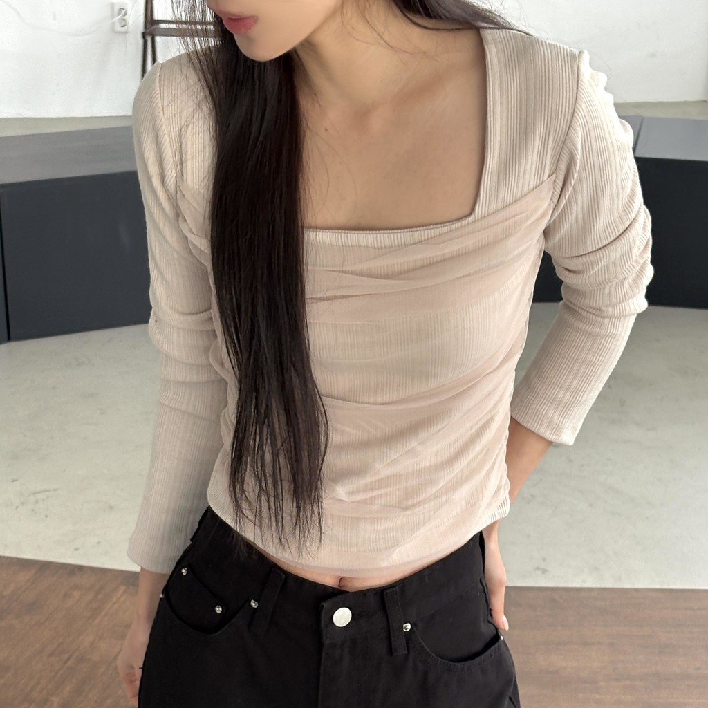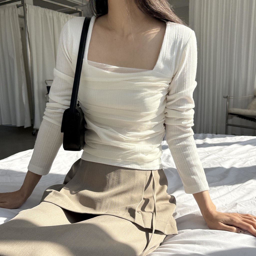 스퀘어넥 디자인으로 쇄골과 목선이 깔끔하게 드러나 단독으로도, 아우터 이너로도 활용도 높은 아이템이에요.