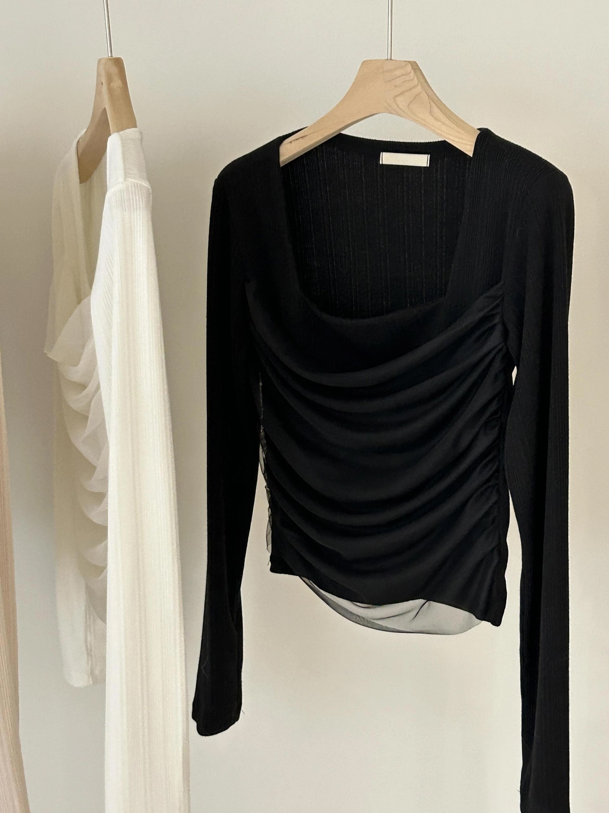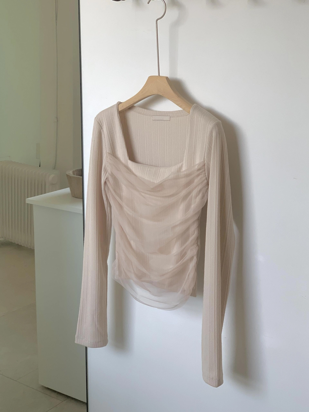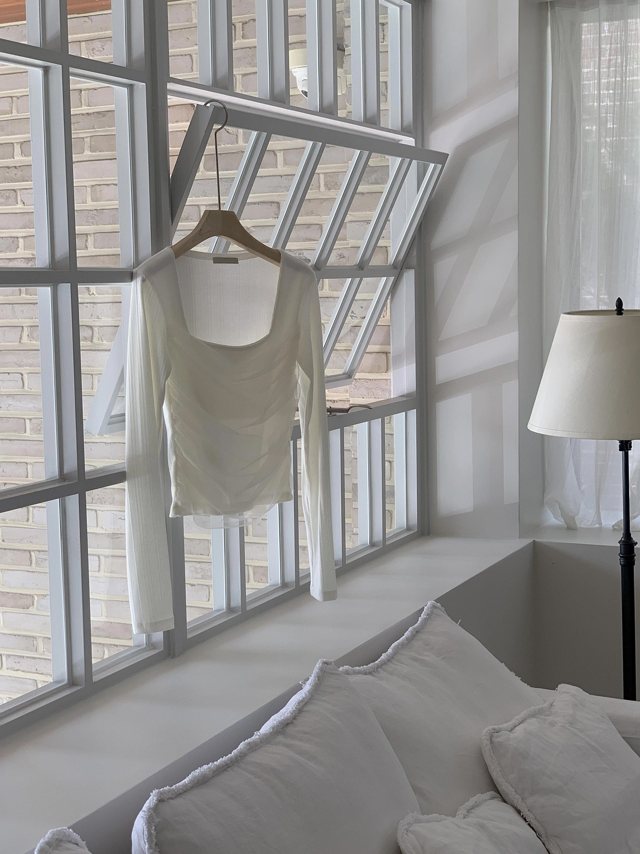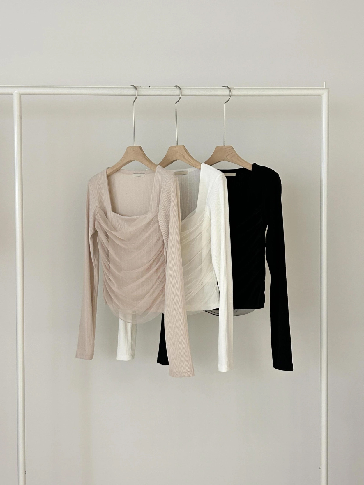 스퀘어넥 디자인으로 쇄골과 목선이 깔끔하게 드러나 단독으로도, 아우터 이너로도 활용도 높은 아이템이에요.