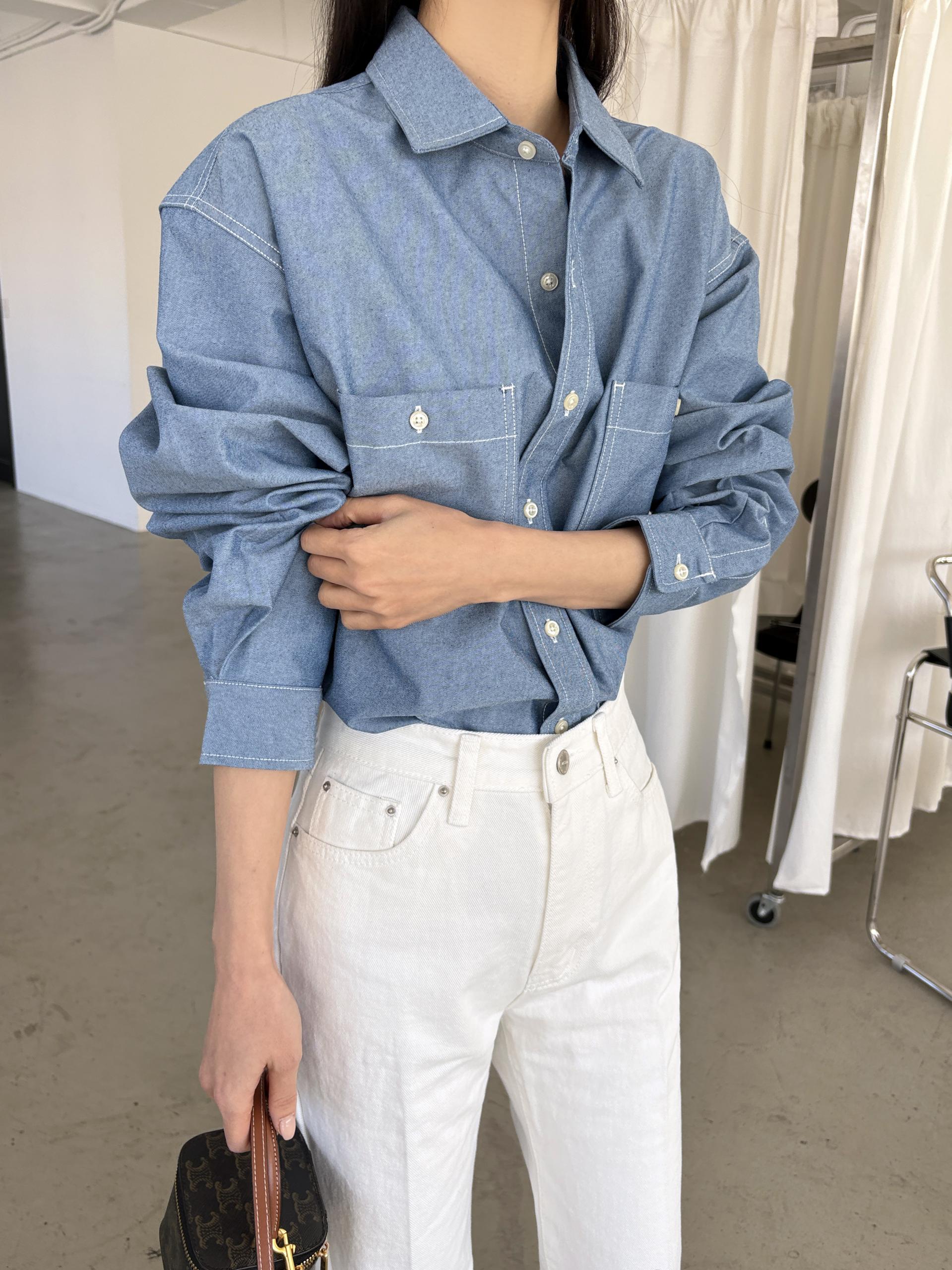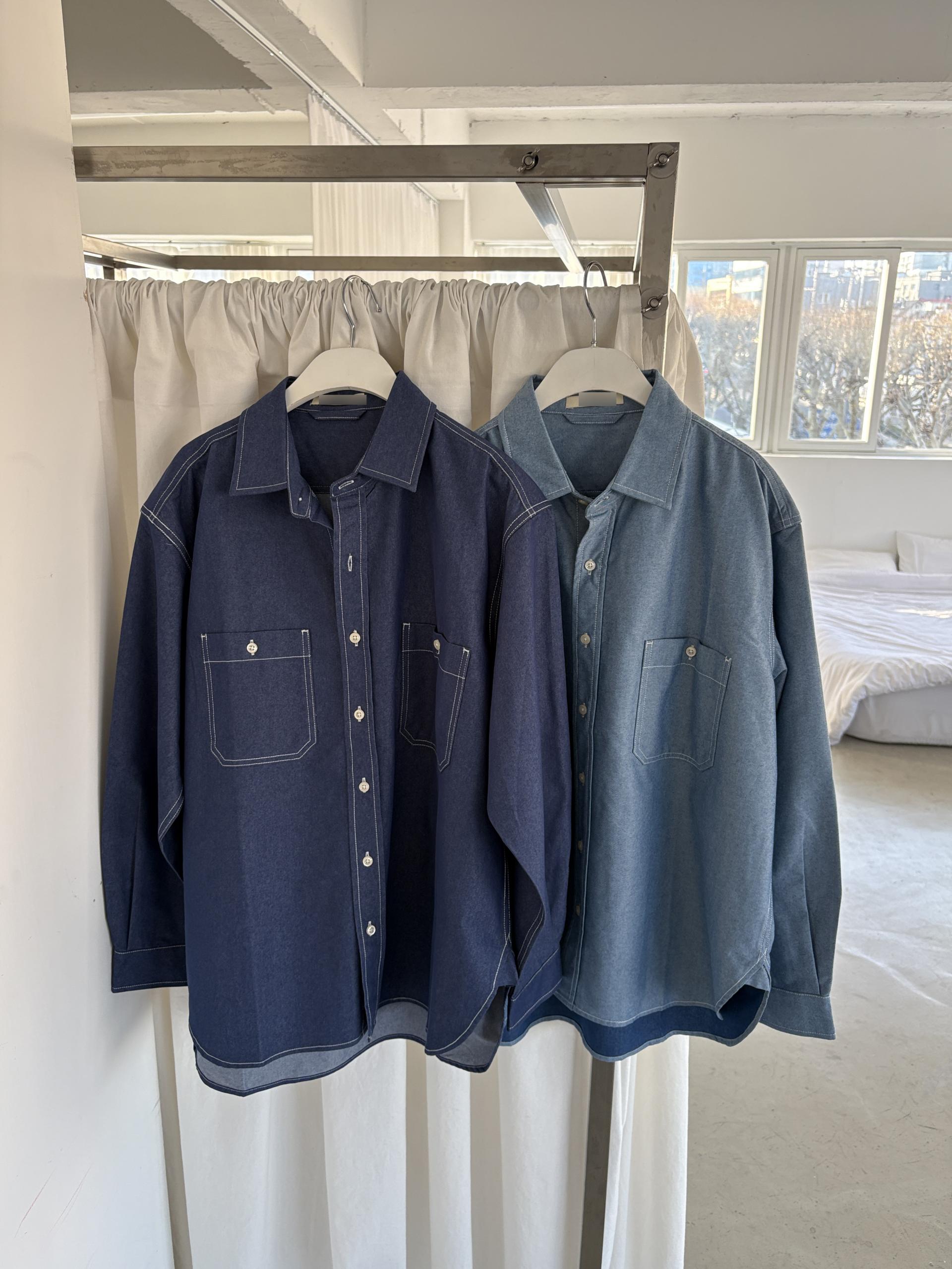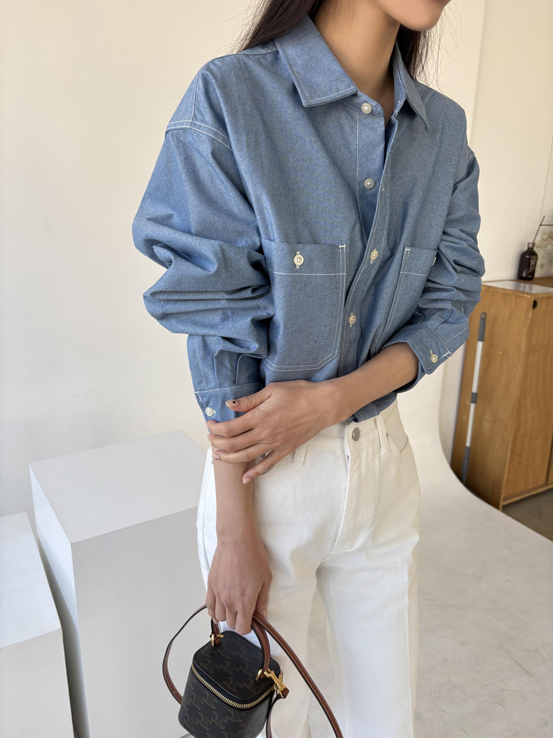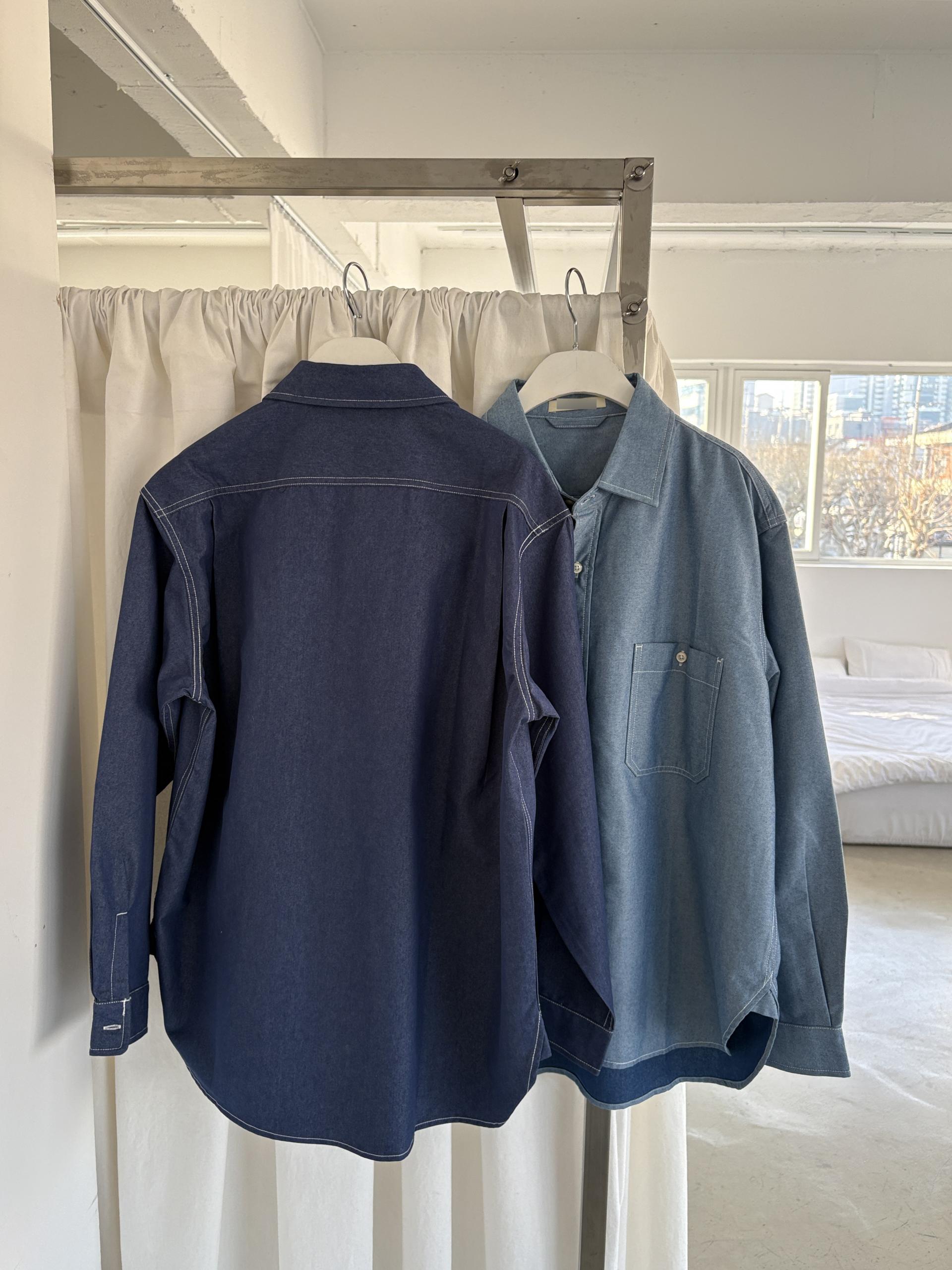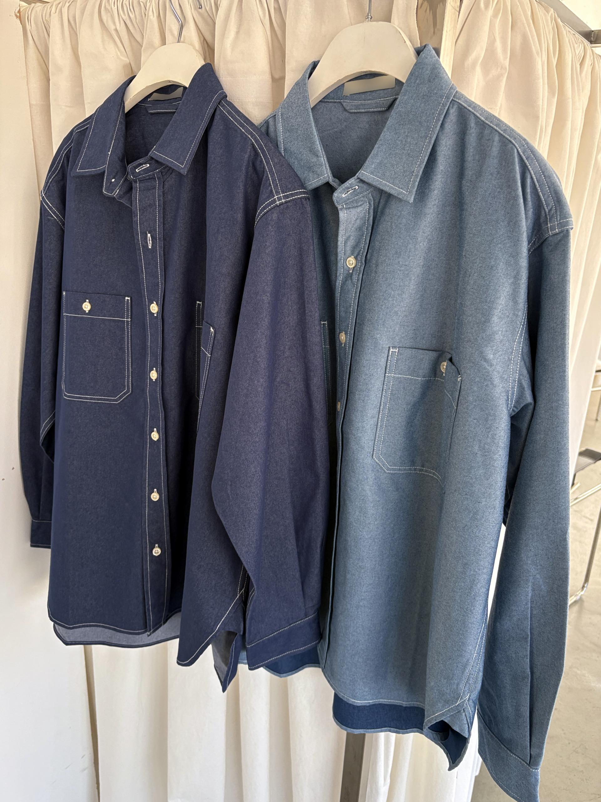 탄탄한 데님 원단에 미니멀한 스티치 디테일이 더해진 데일리 셔츠입니다.