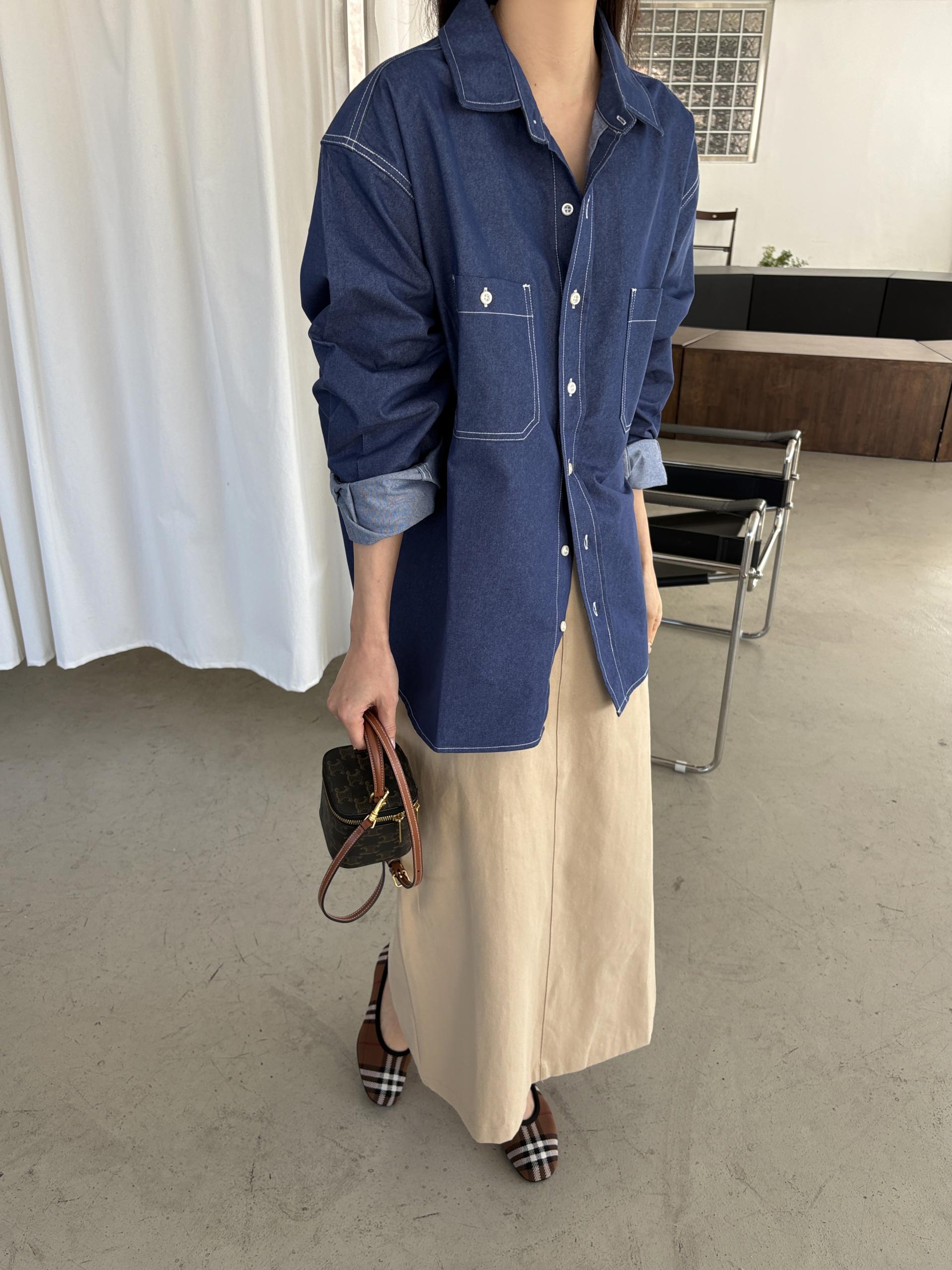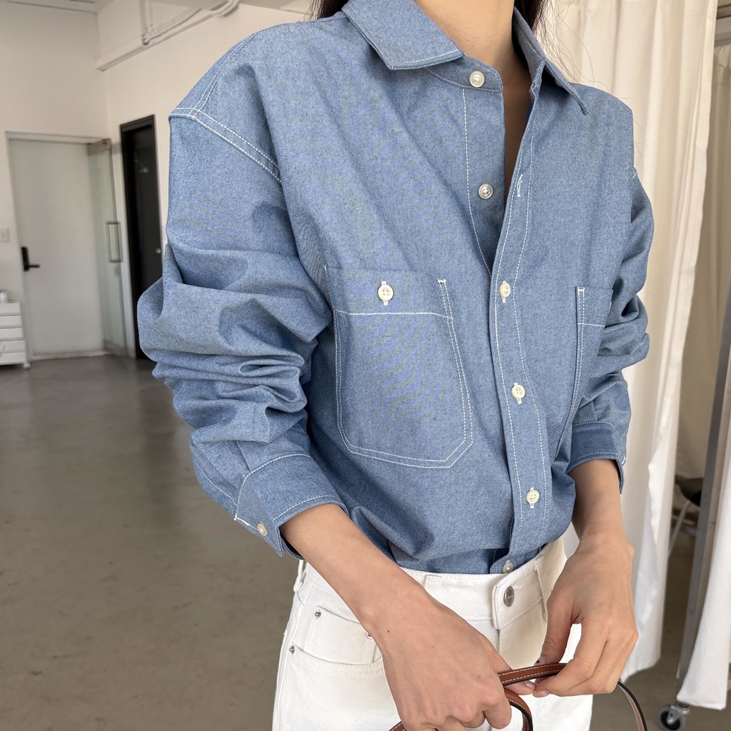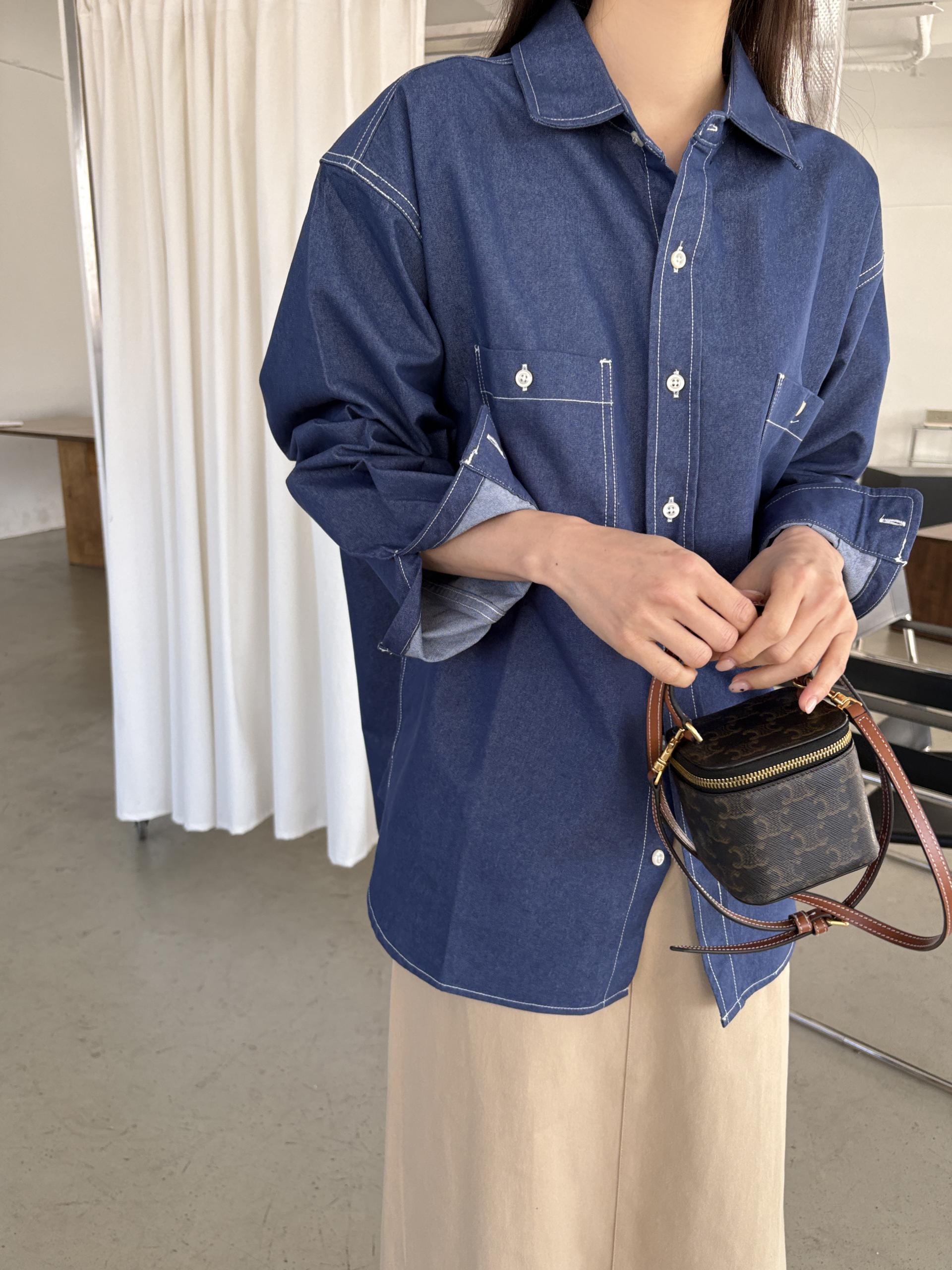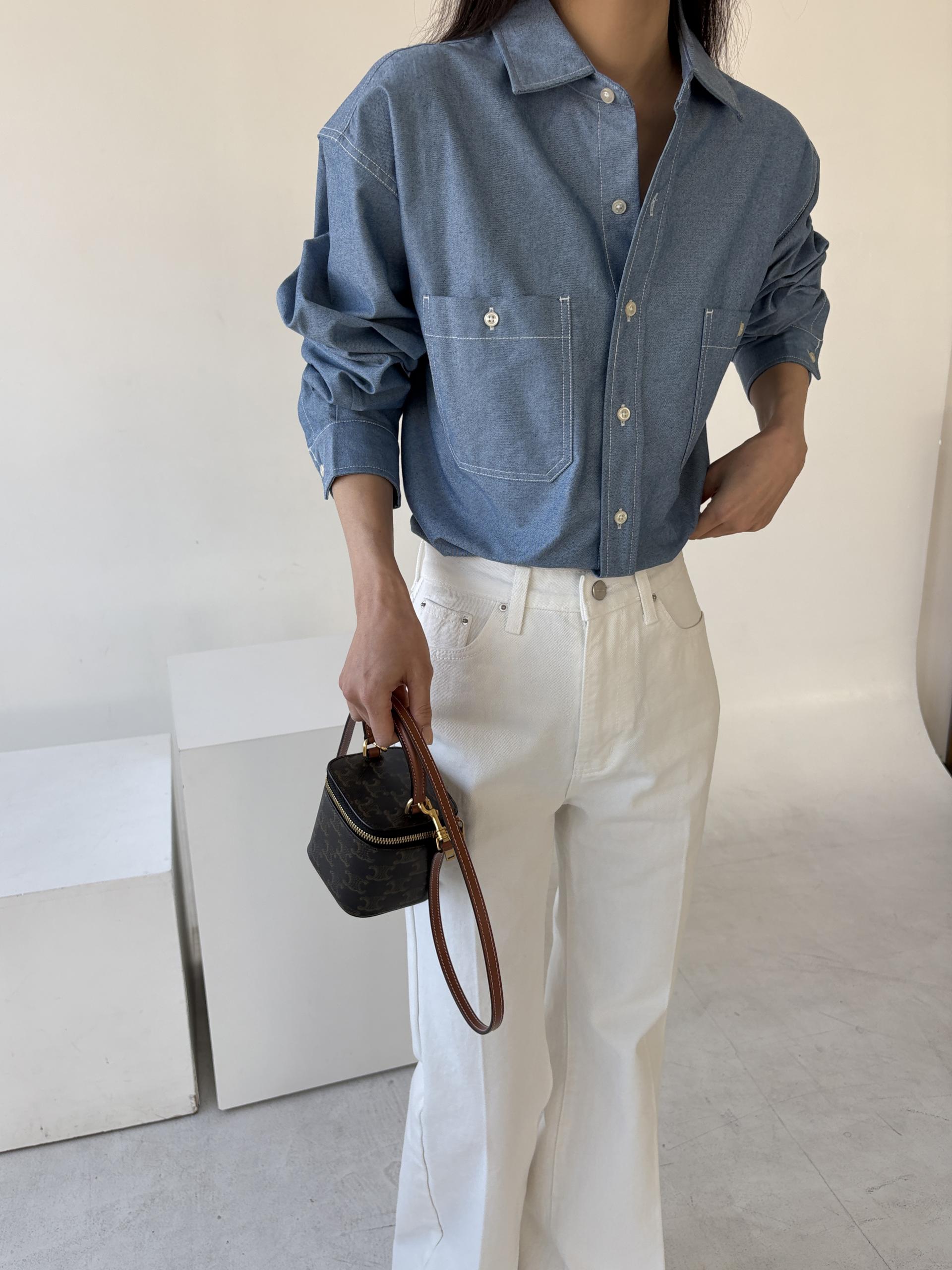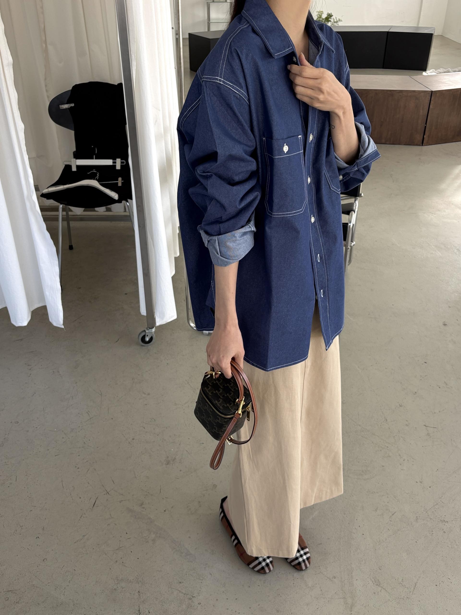 탄탄한 데님 원단에 미니멀한 스티치 디테일이 더해진 데일리 셔츠입니다.