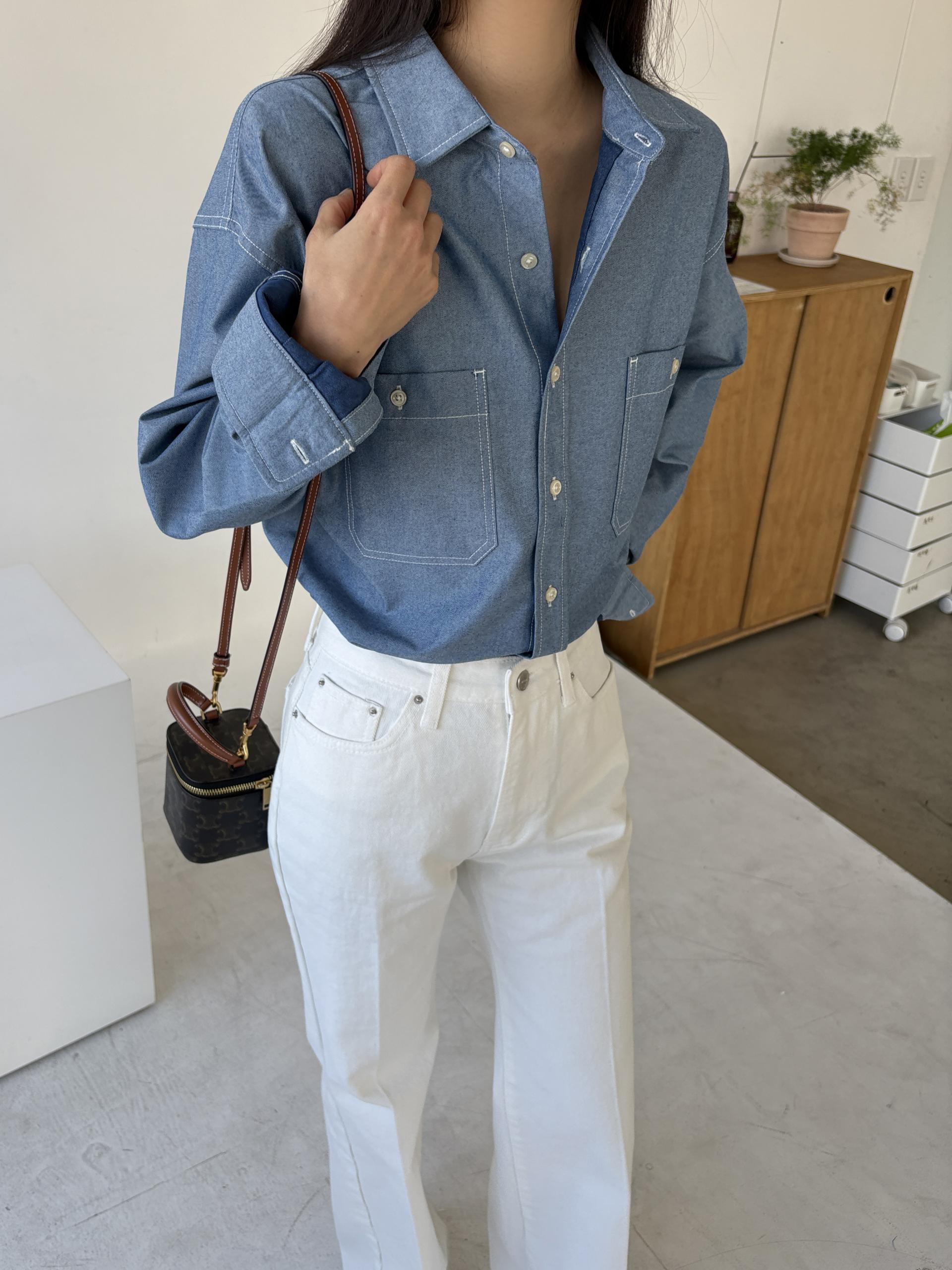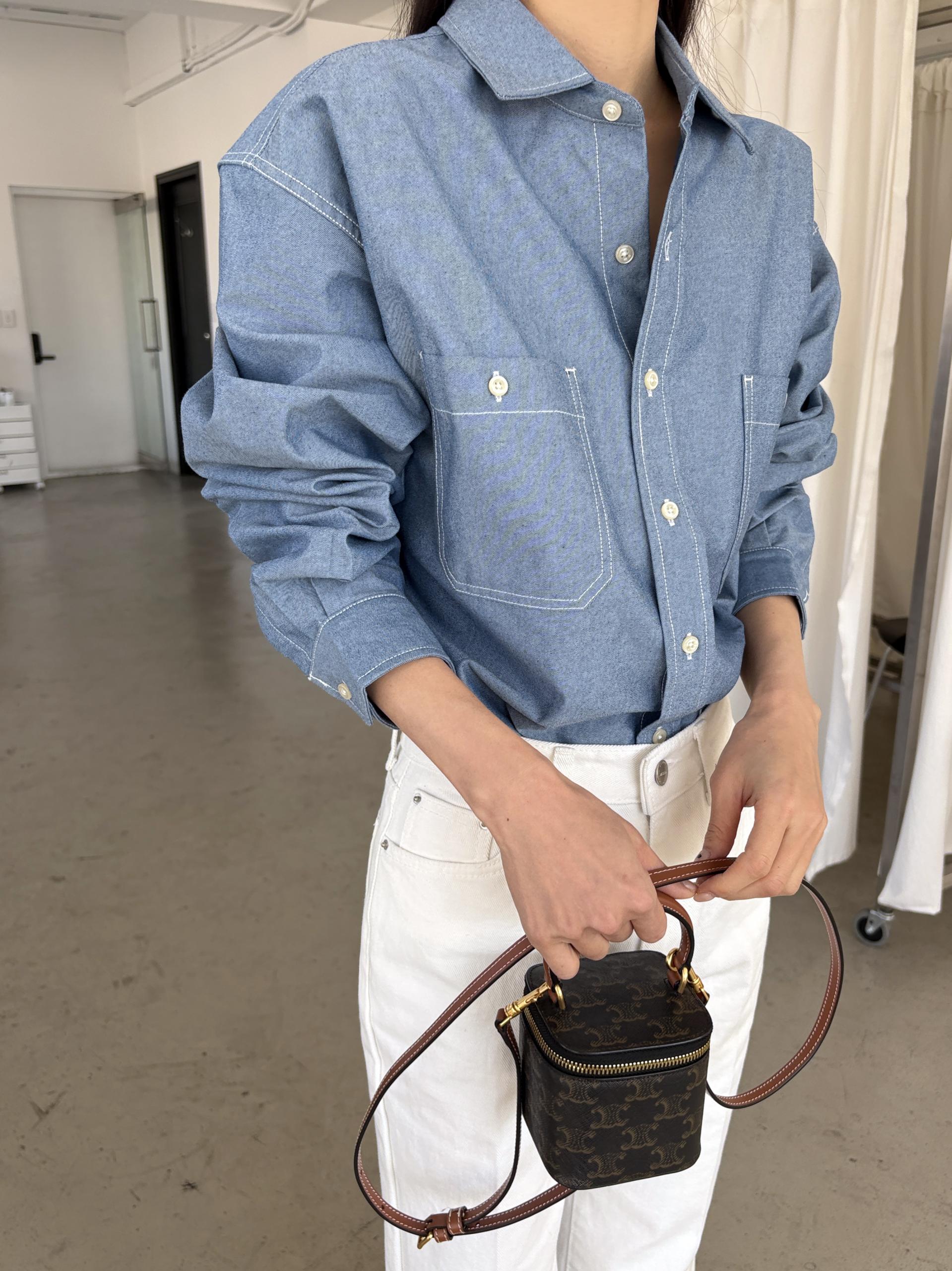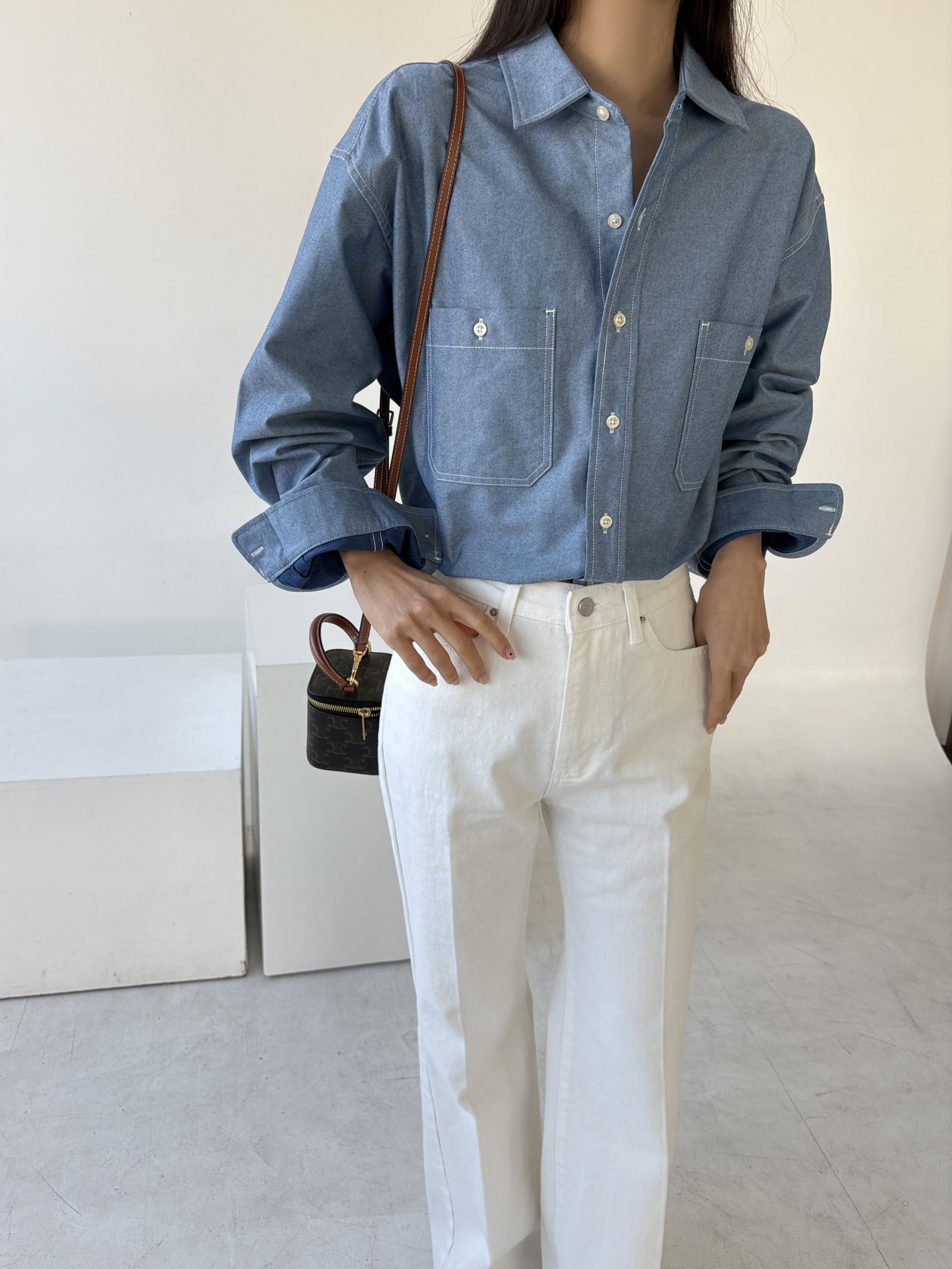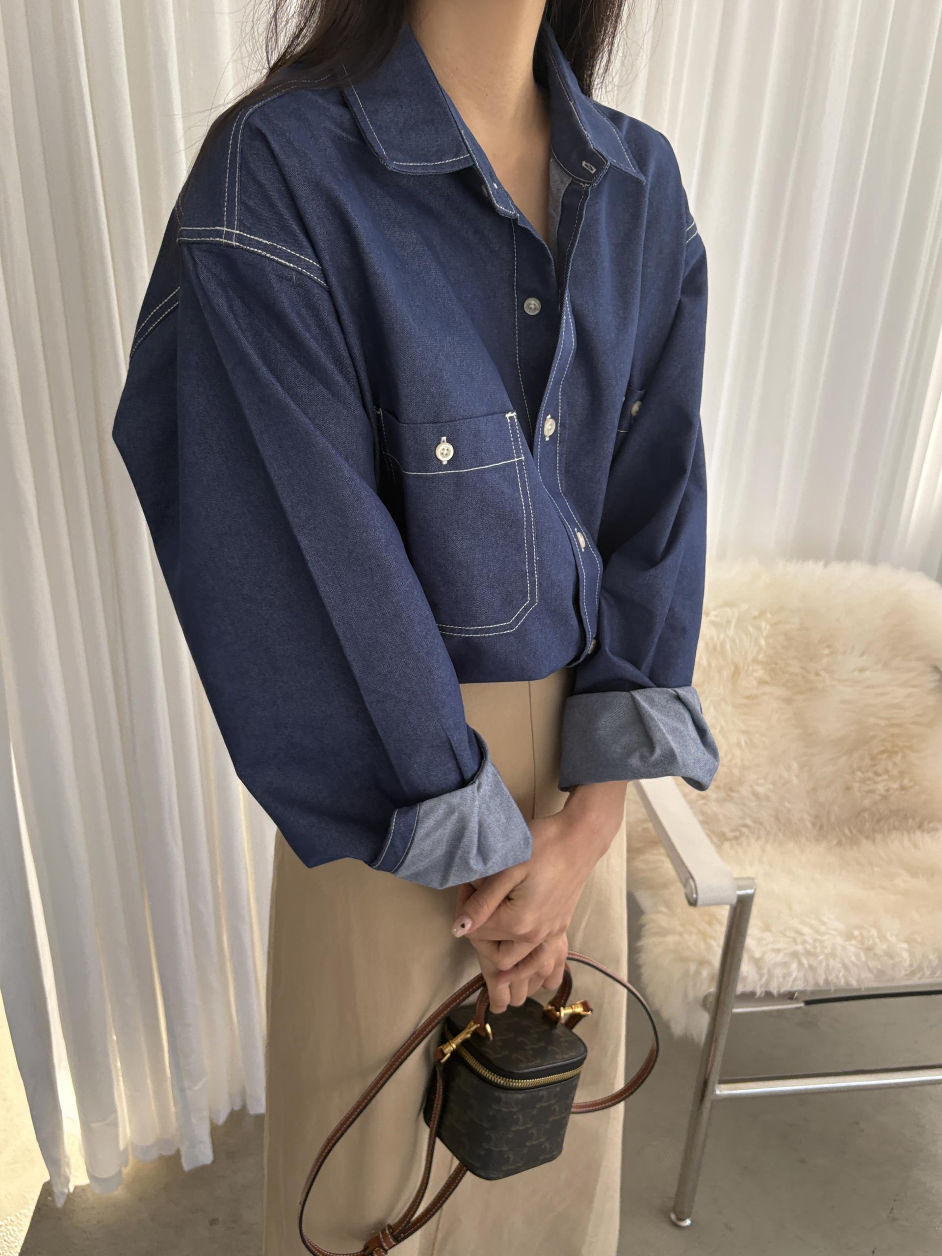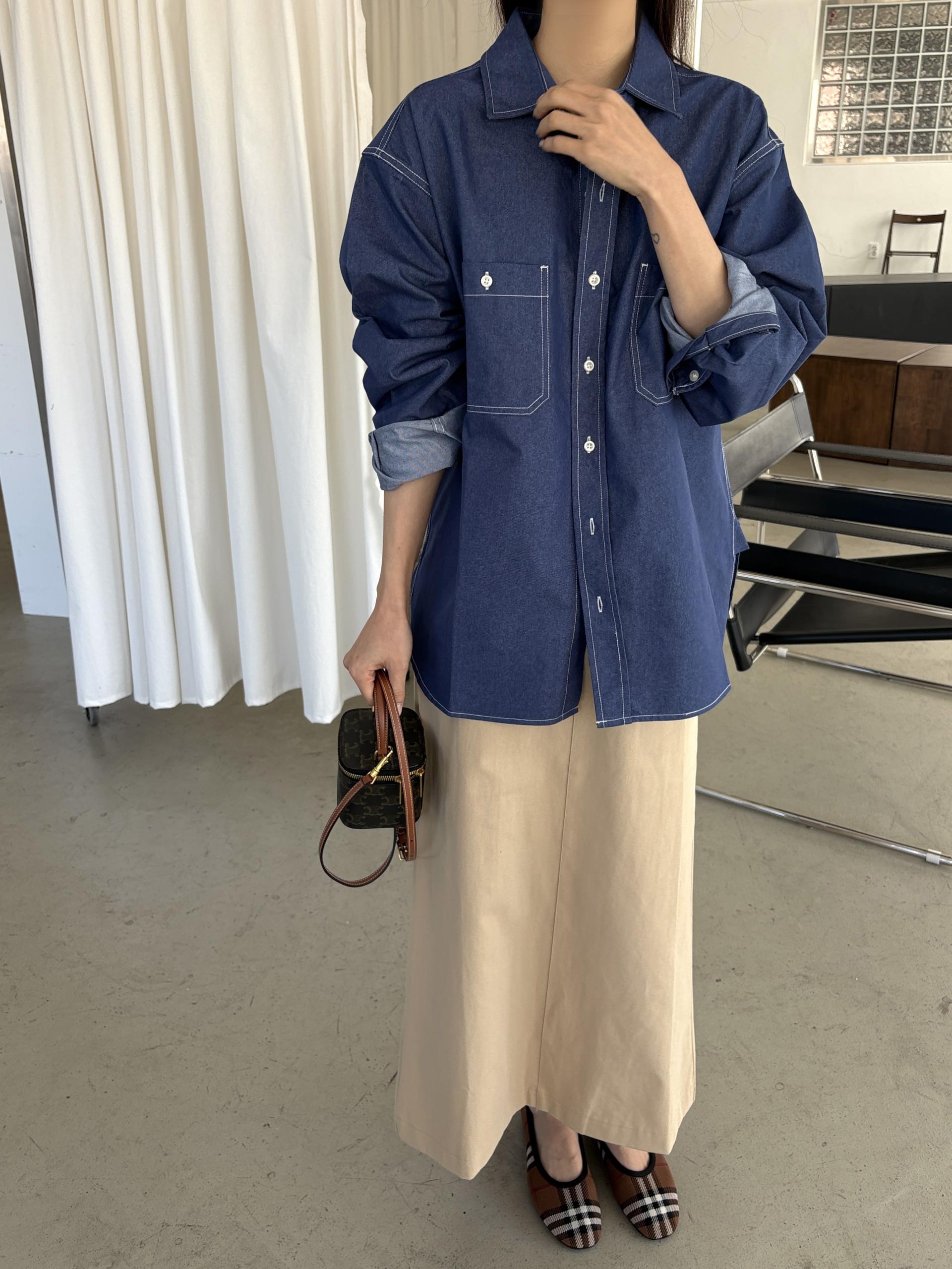 탄탄한 데님 원단에 미니멀한 스티치 디테일이 더해진 데일리 셔츠입니다.