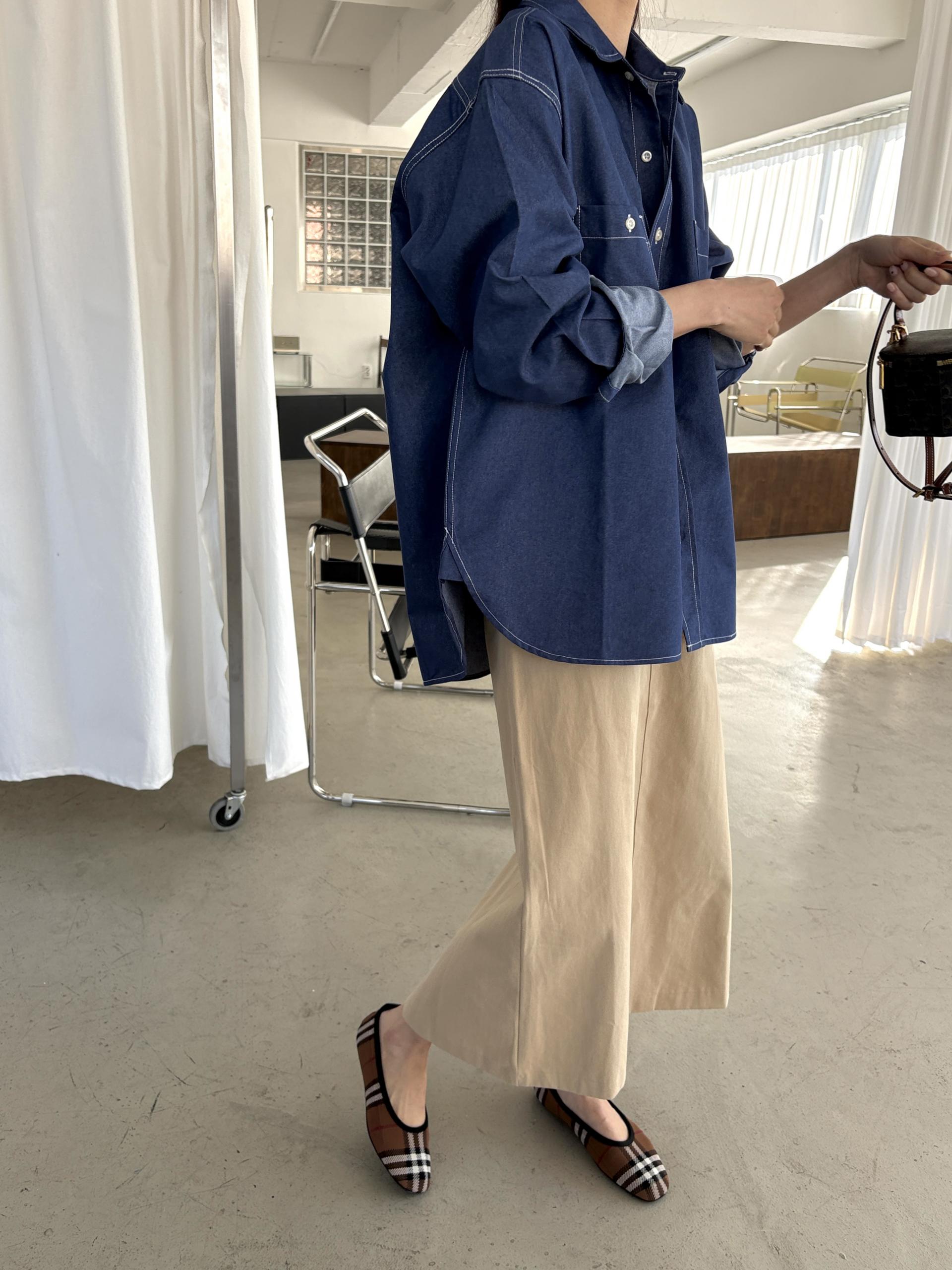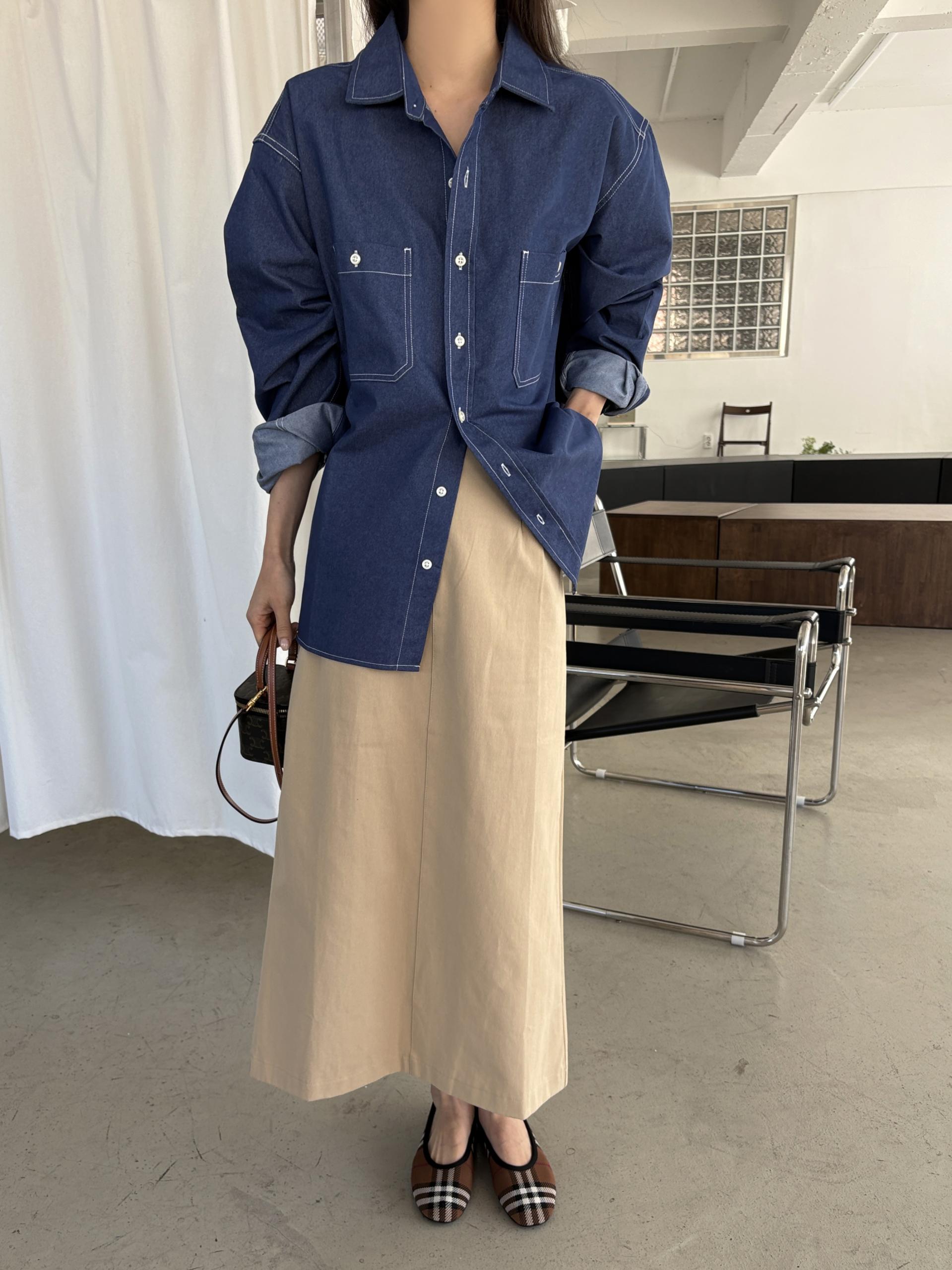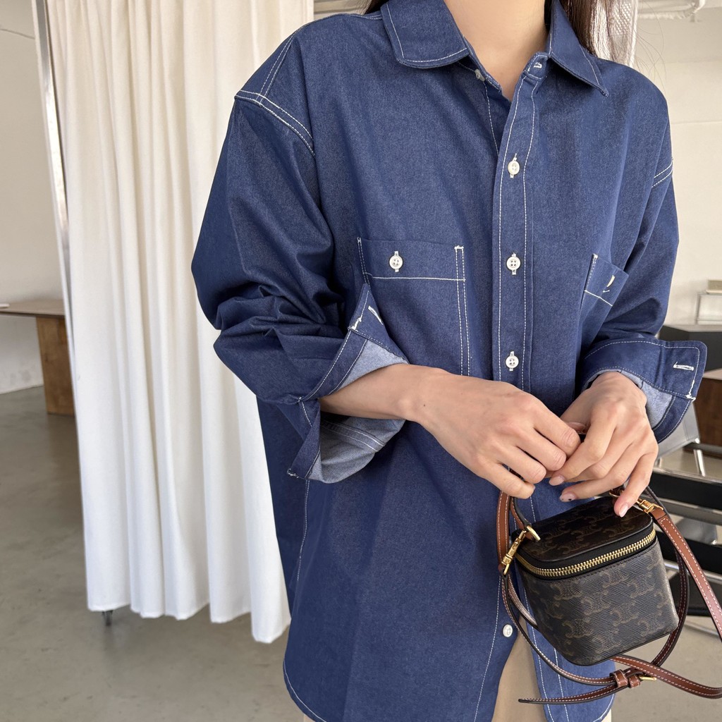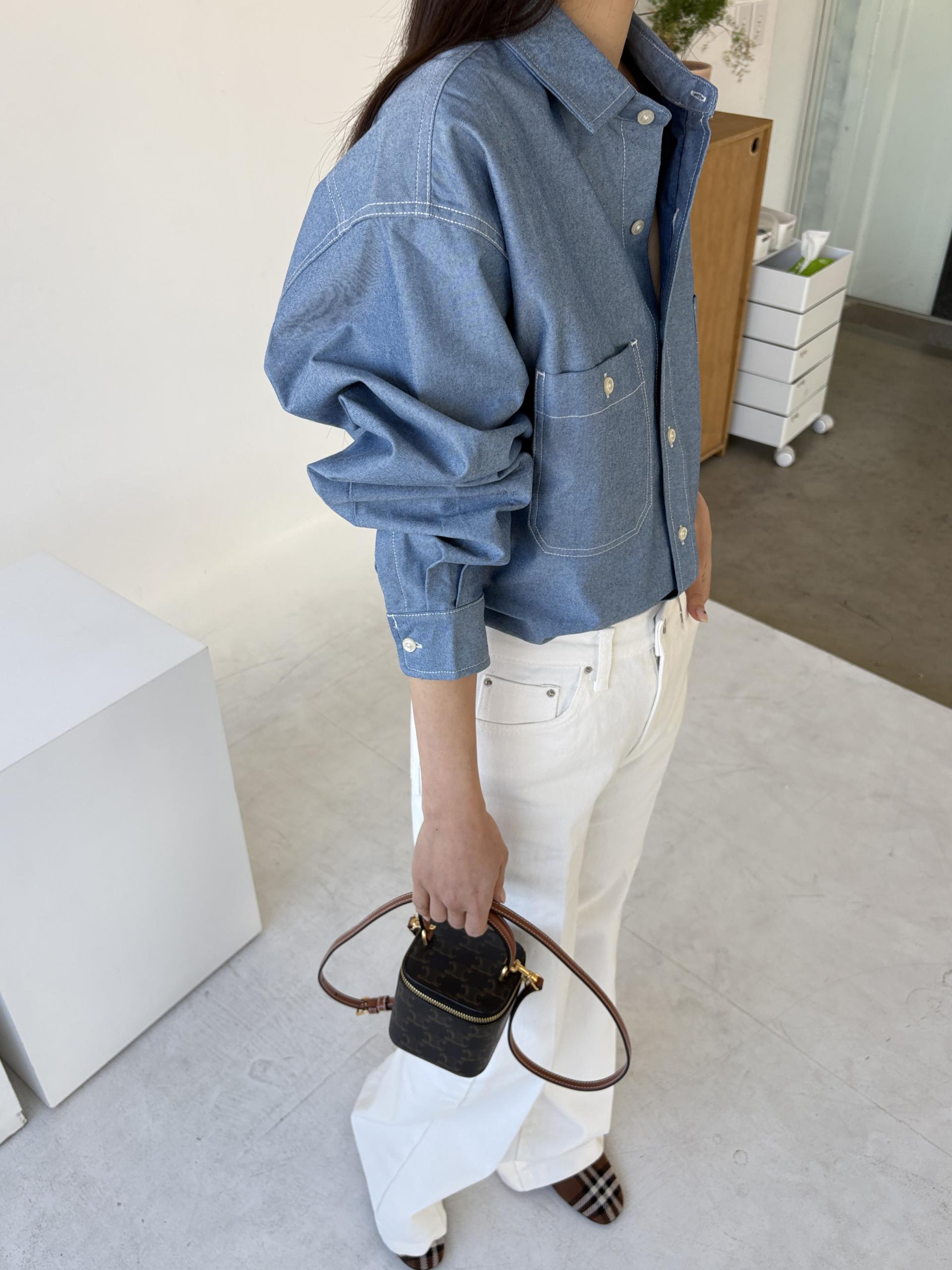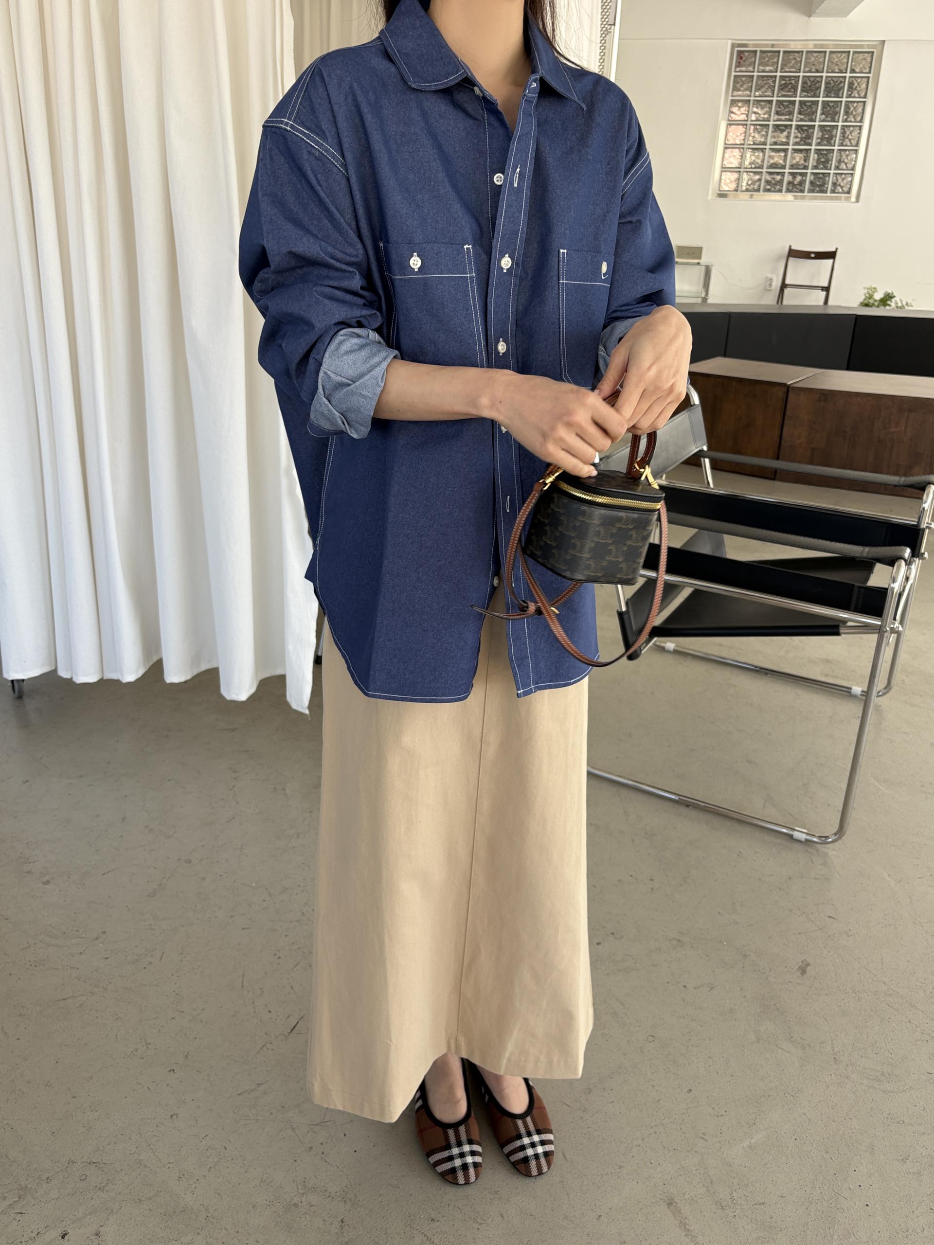 탄탄한 데님 원단에 미니멀한 스티치 디테일이 더해진 데일리 셔츠입니다.