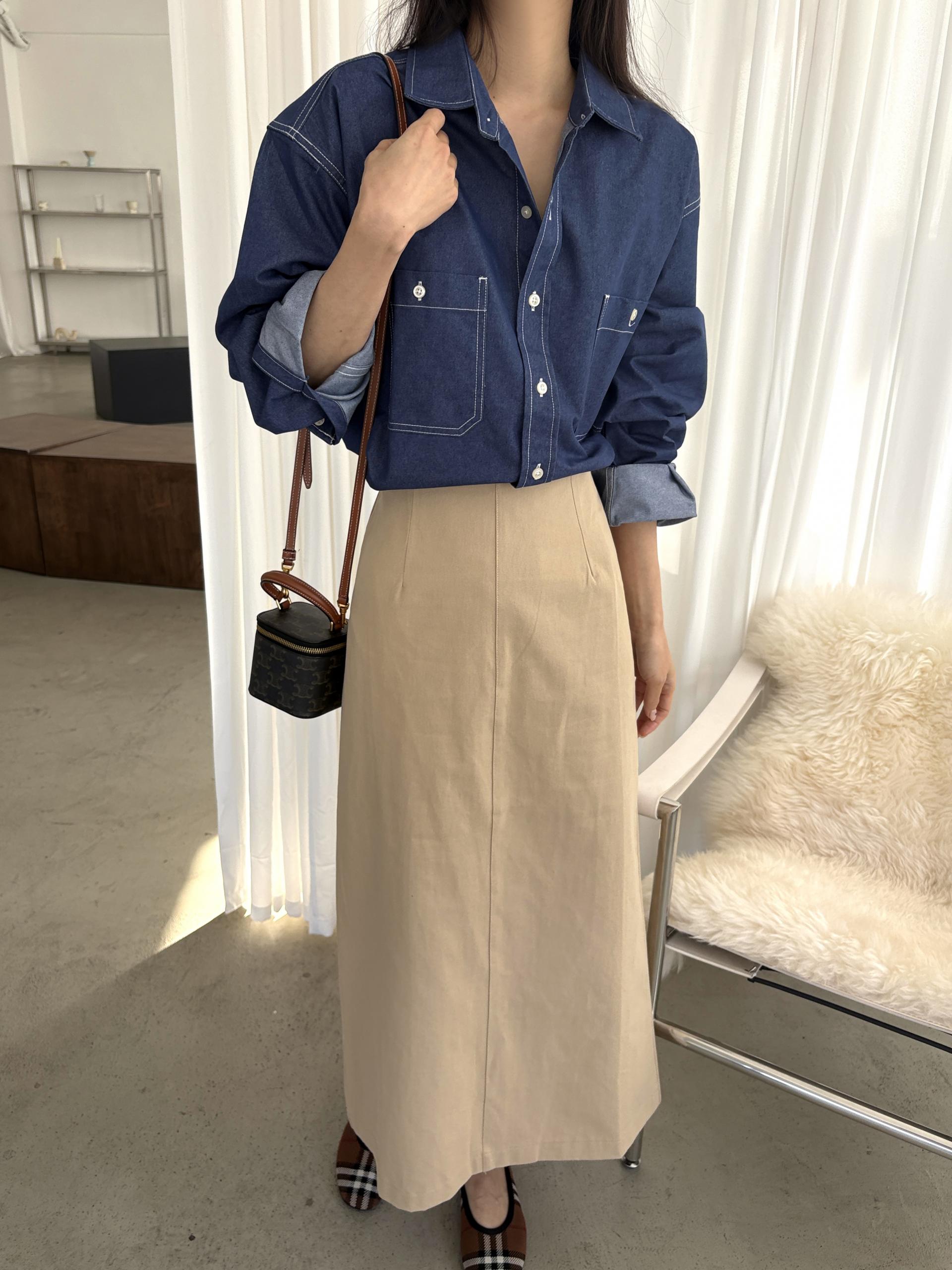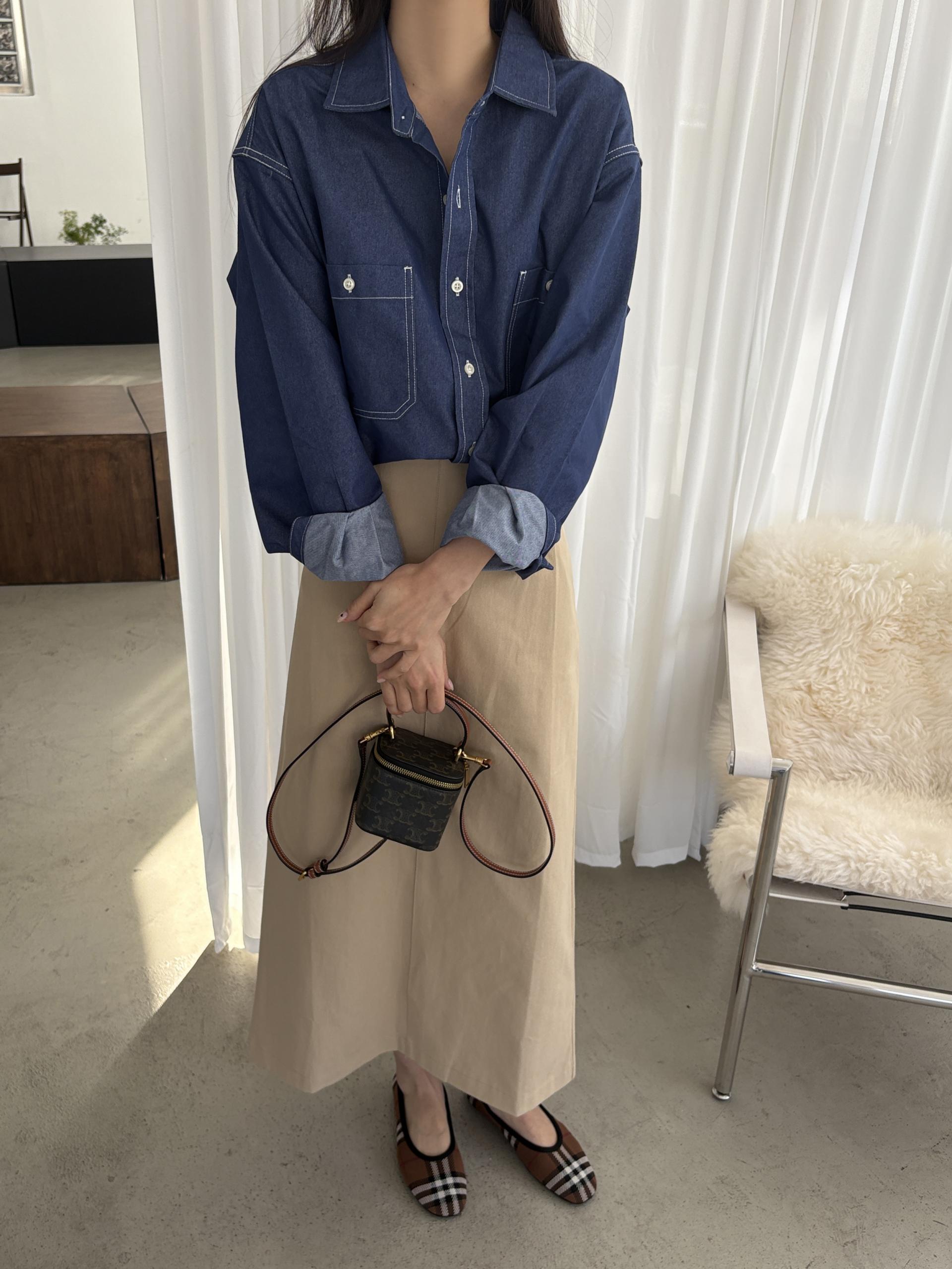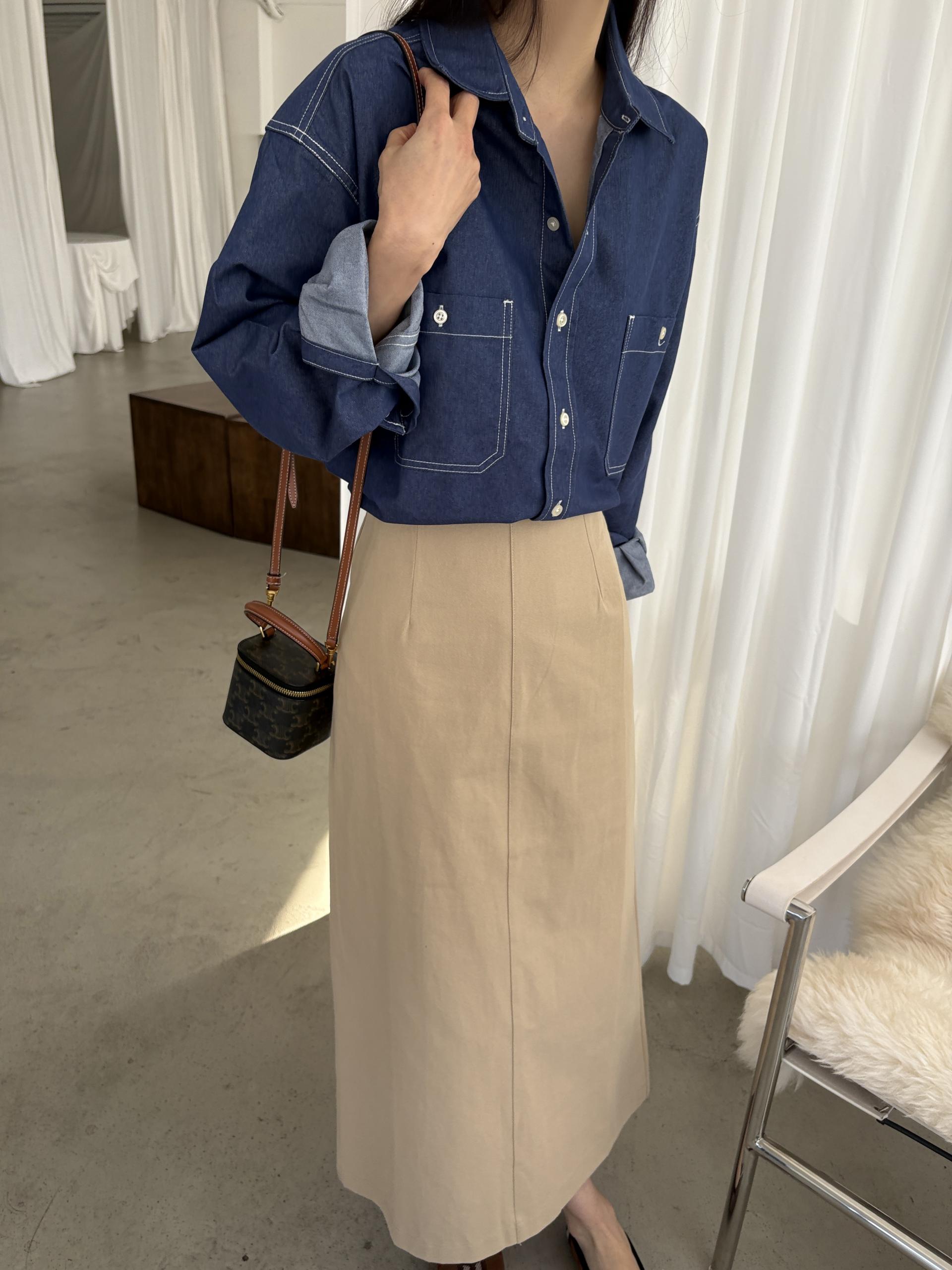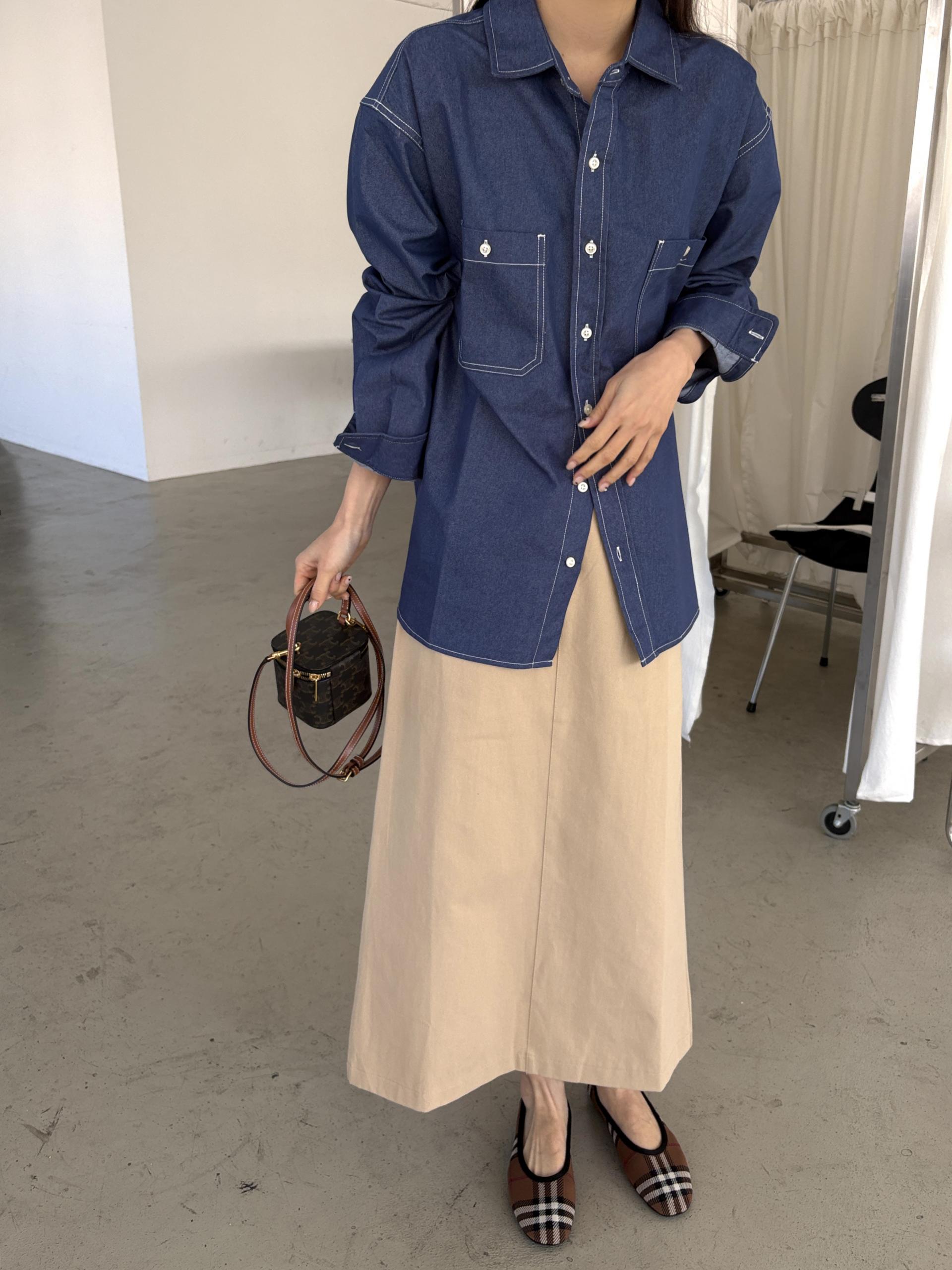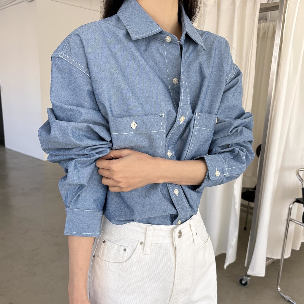 탄탄한 데님 원단에 미니멀한 스티치 디테일이 더해진 데일리 셔츠입니다.