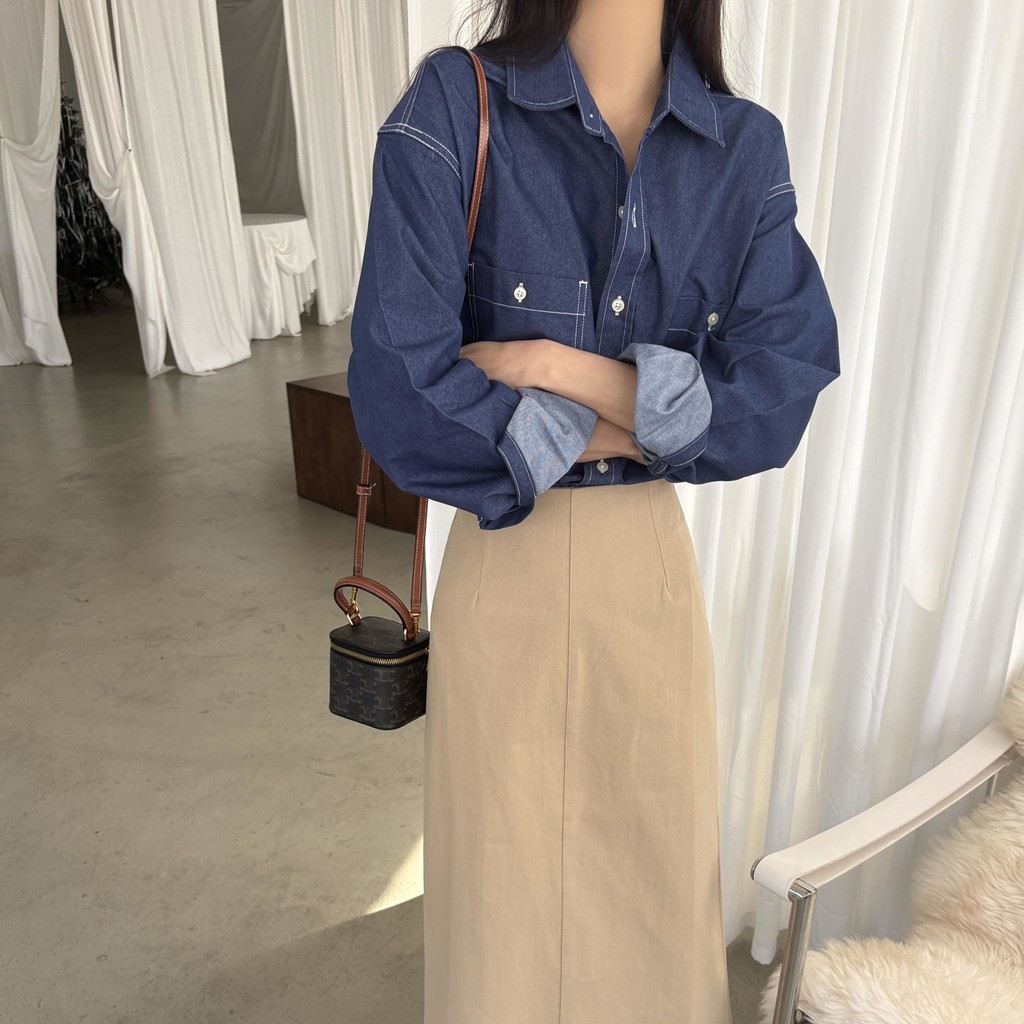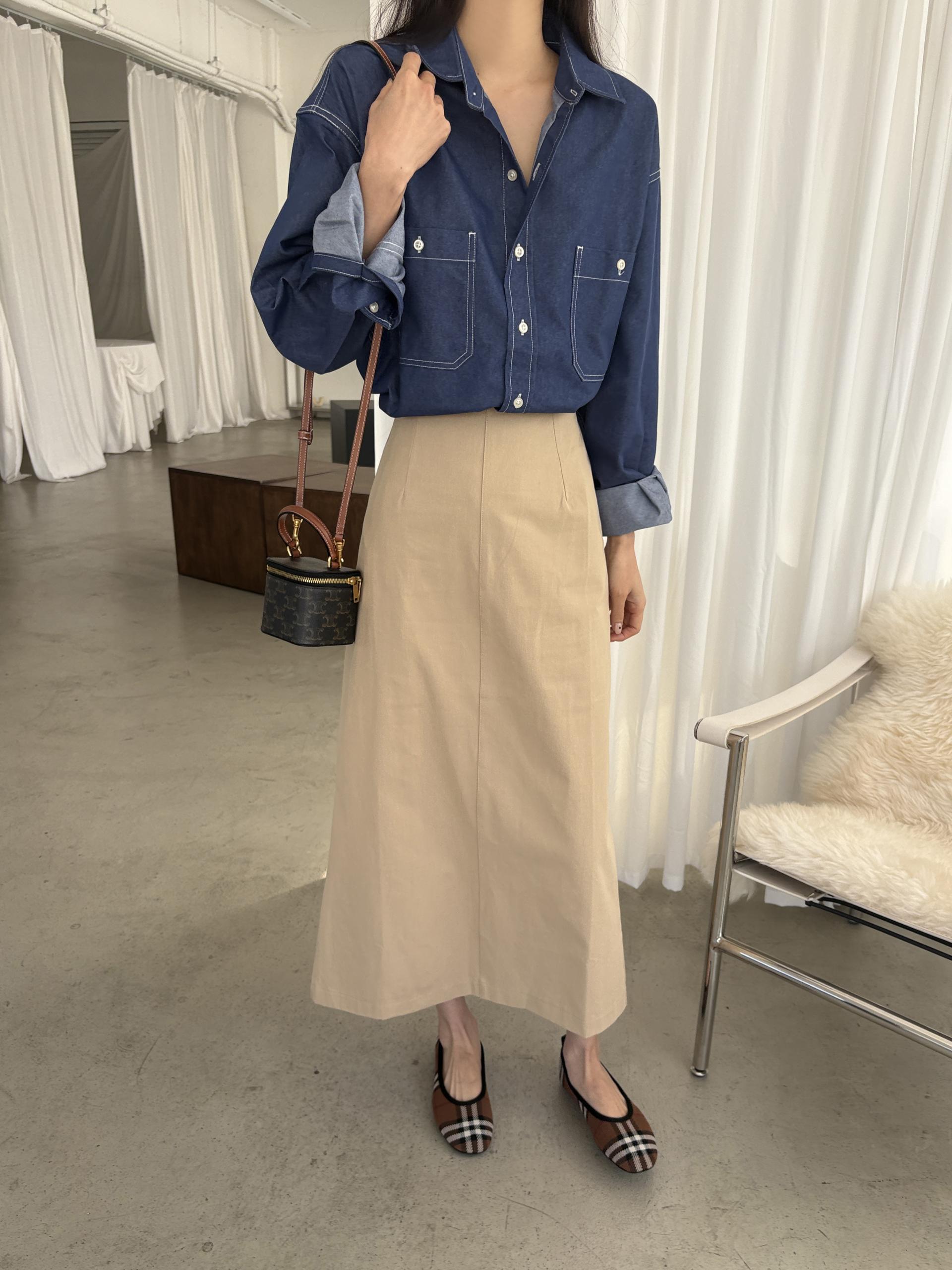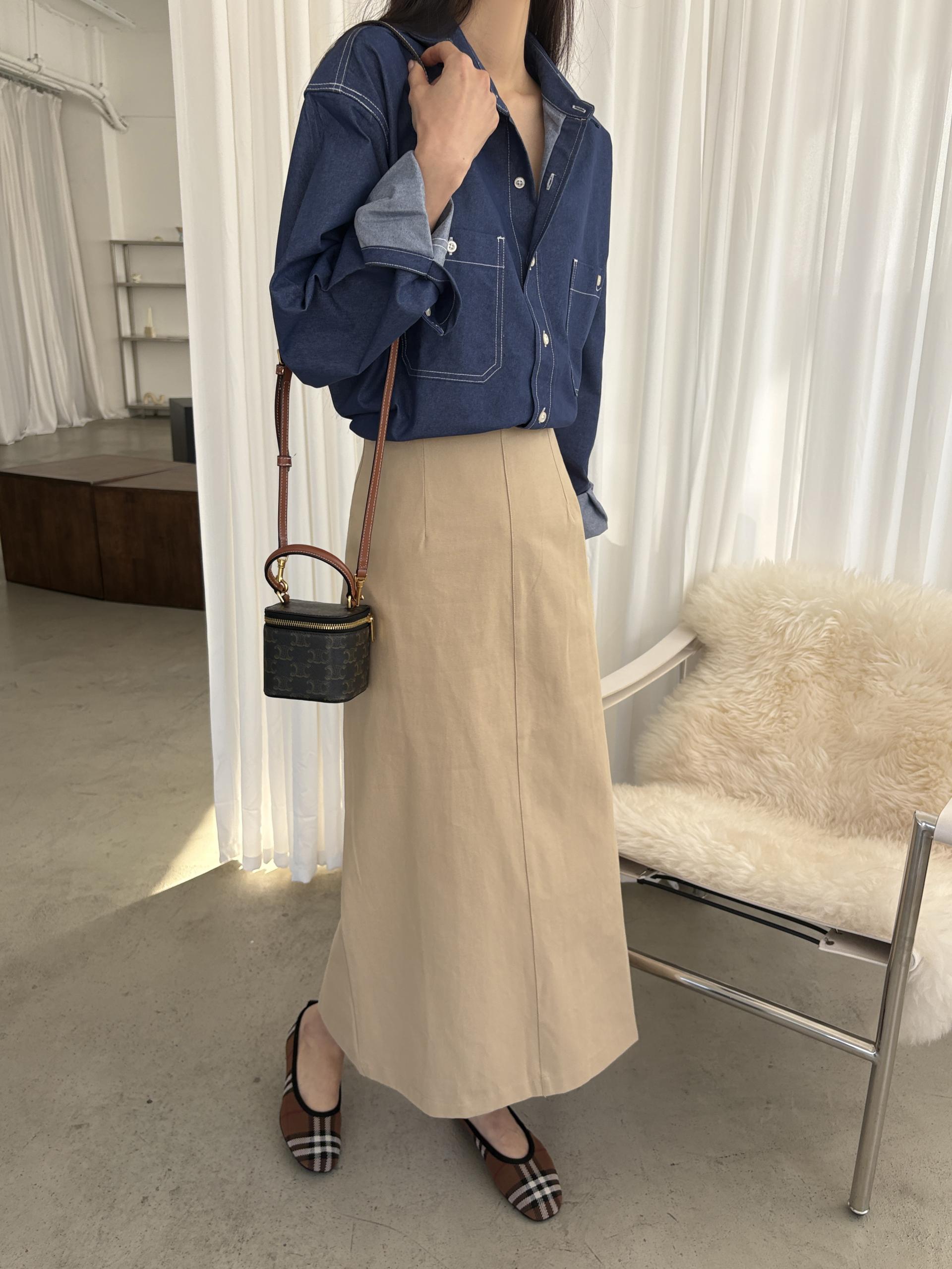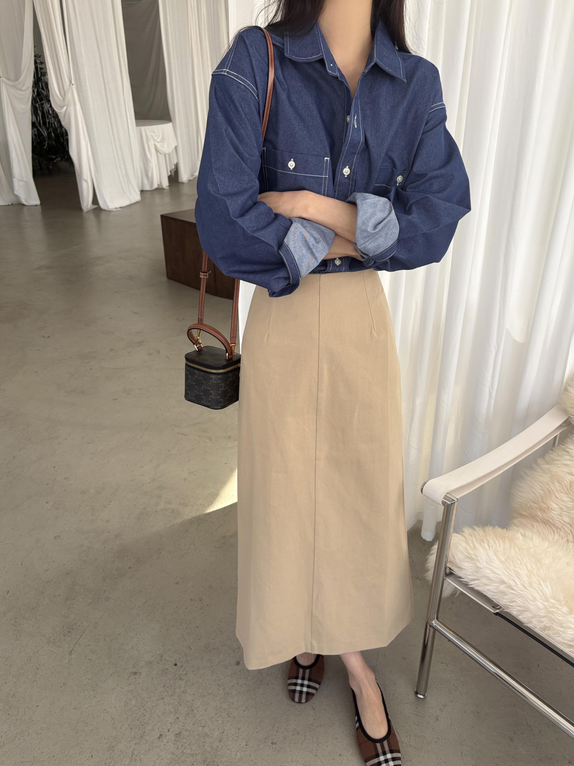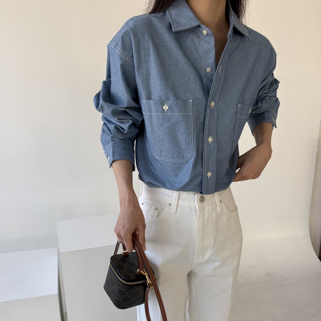 탄탄한 데님 원단에 미니멀한 스티치 디테일이 더해진 데일리 셔츠입니다.