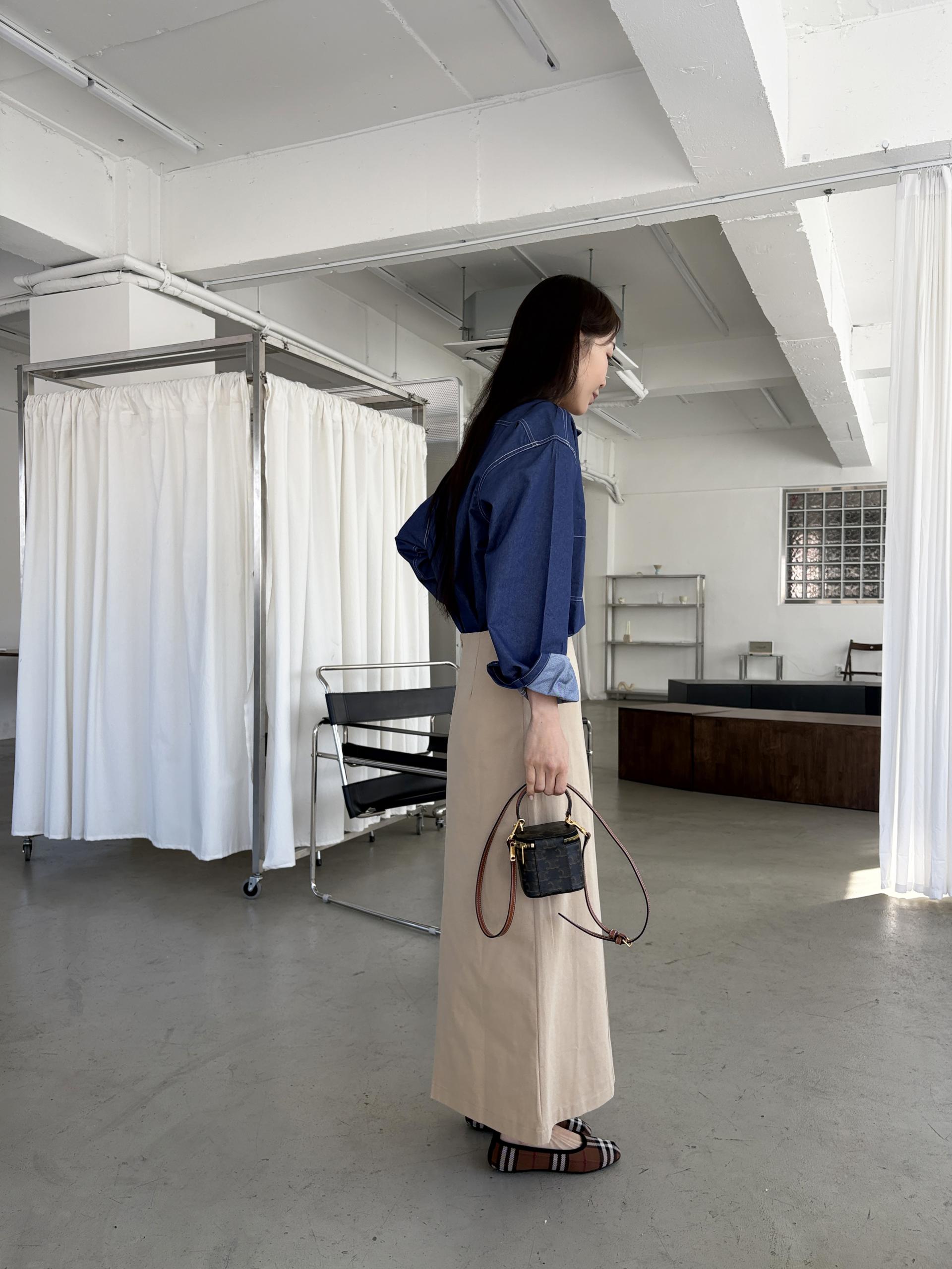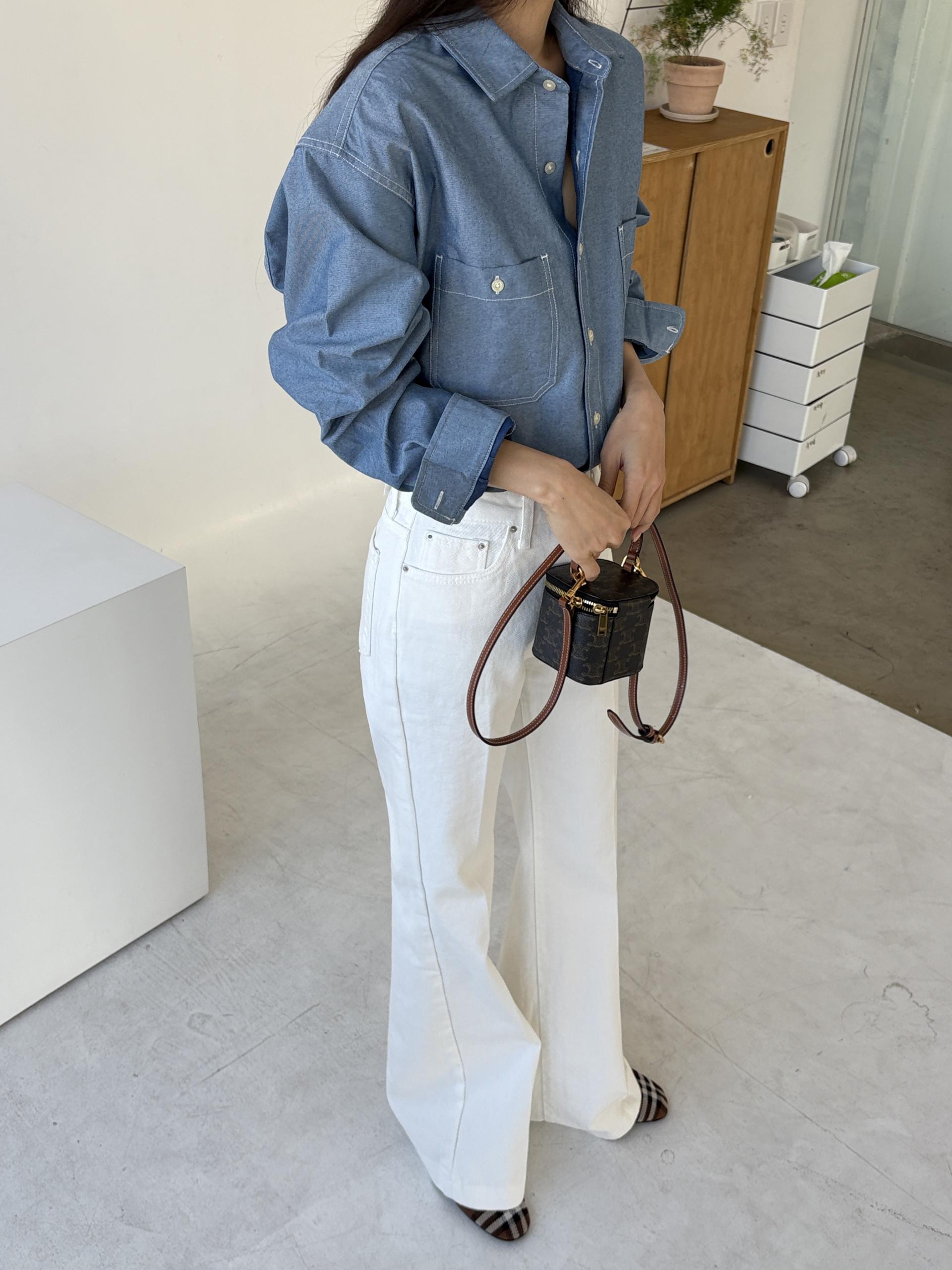 화이트 팬츠, 슬랙스, 스커트 어디에나 자연스럽게 어우러지며, 청청 코디로 스타일링해도 좋습니다.